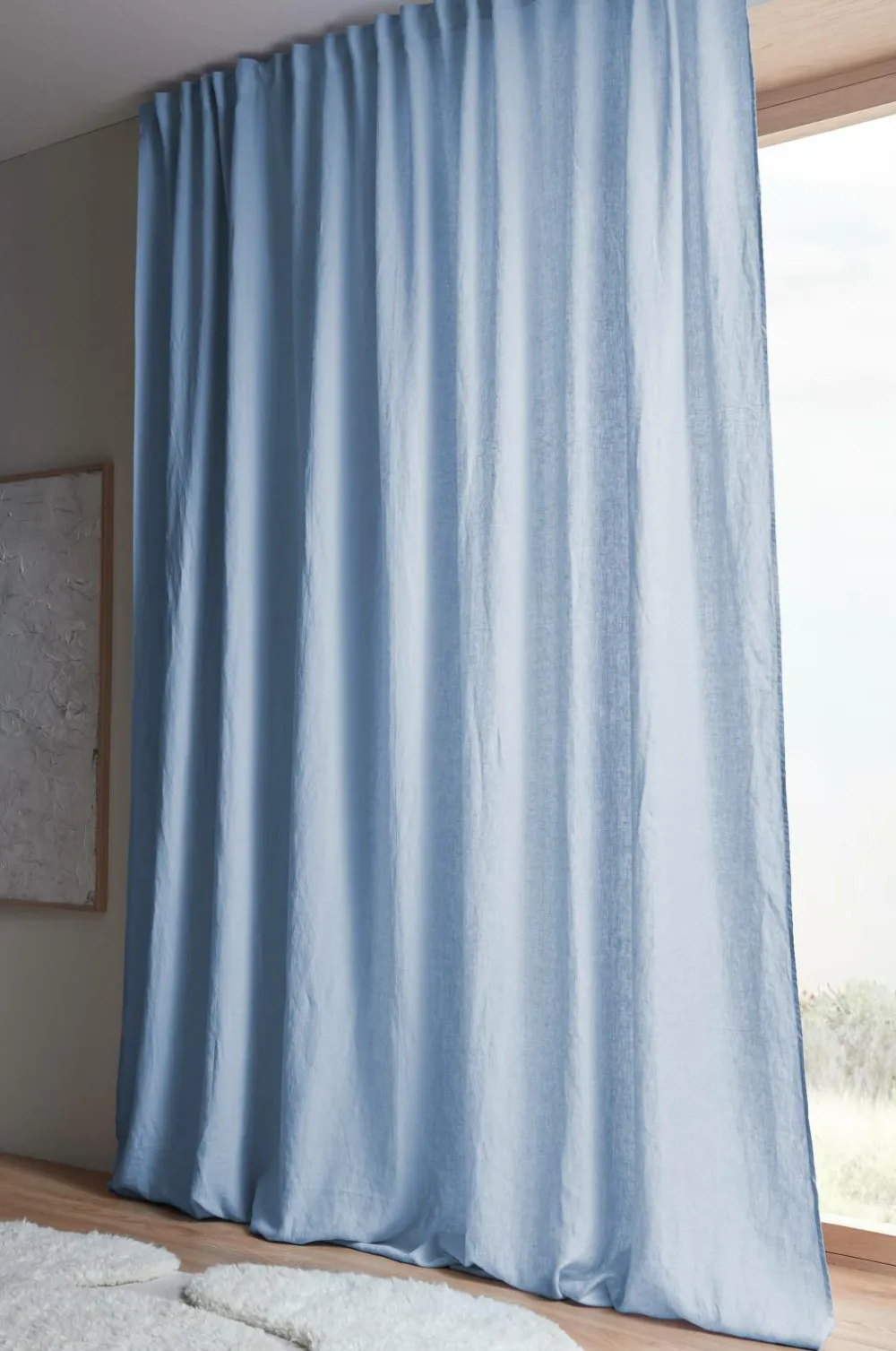 En ekstra bred multibåndslængde i vasket hør med smuk struktur. Multibåndet gør, at du enten kan hænge gardinet direkte på en gardinstang gennem de skjulte stropper eller anvende ringe, nålekroge eller fingerkroge. Snoren i rynkebåndet gør, at du let kan skabe ensartede, flotte læg. Kan også bruges med rynkebåndskrog. Bredde: 270 cm. Længde: 300 cm.