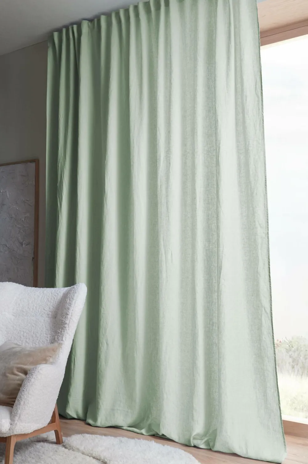 En ekstra bred multibåndslængde i vasket hør med smuk struktur. Multibåndet gør, at du enten kan hænge gardinet direkte på en gardinstang gennem de skjulte stropper eller anvende ringe, nålekroge eller fingerkroge. Snoren i rynkebåndet gør, at du let kan skabe ensartede, flotte læg. Kan også bruges med rynkebåndskrog. Bredde: 270 cm. Længde: 300 cm.