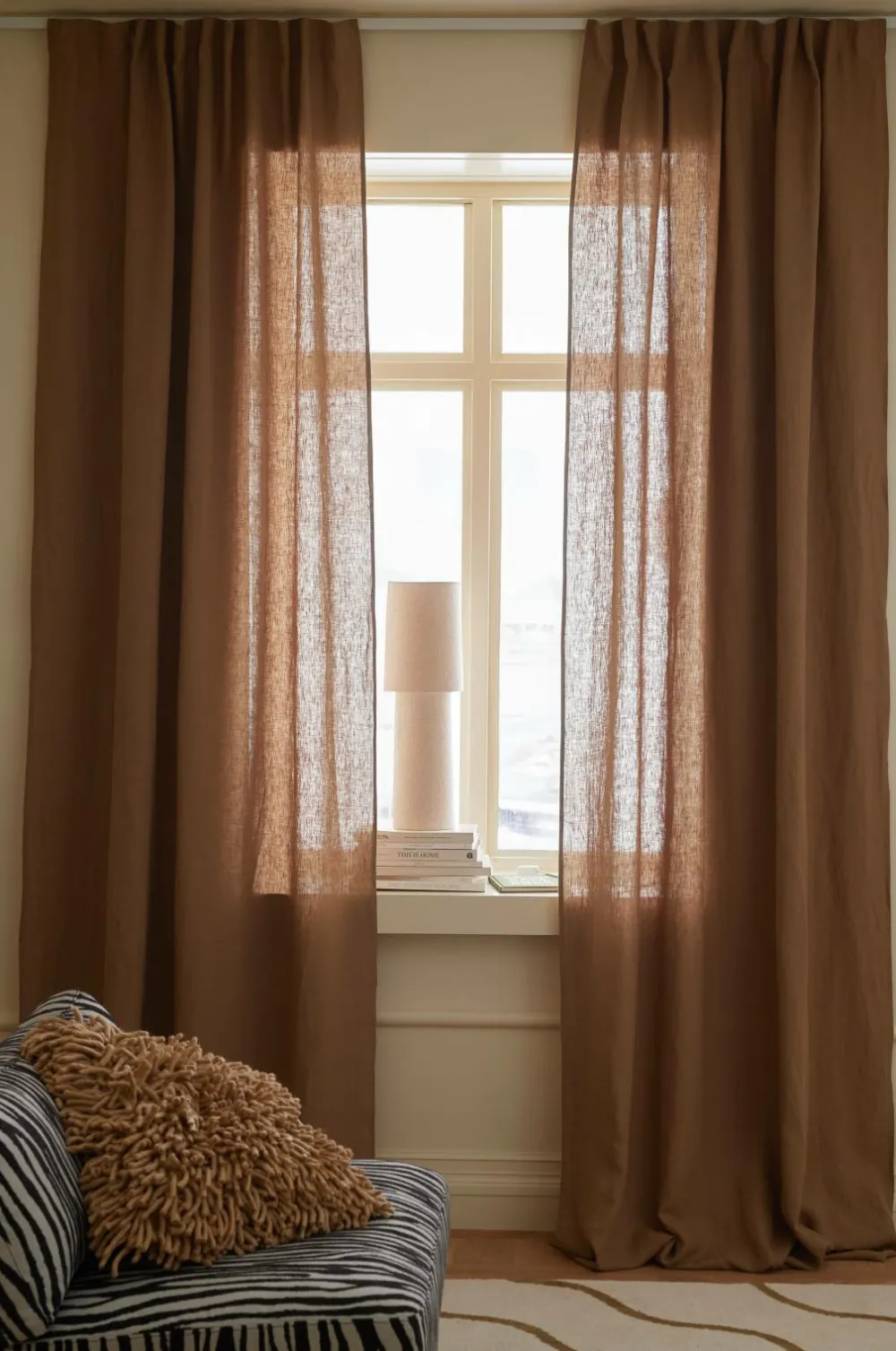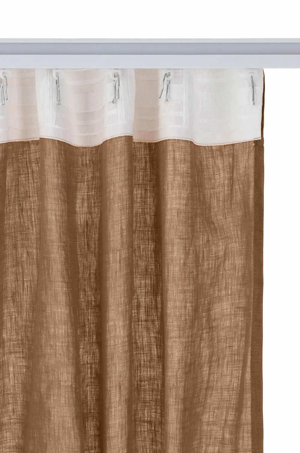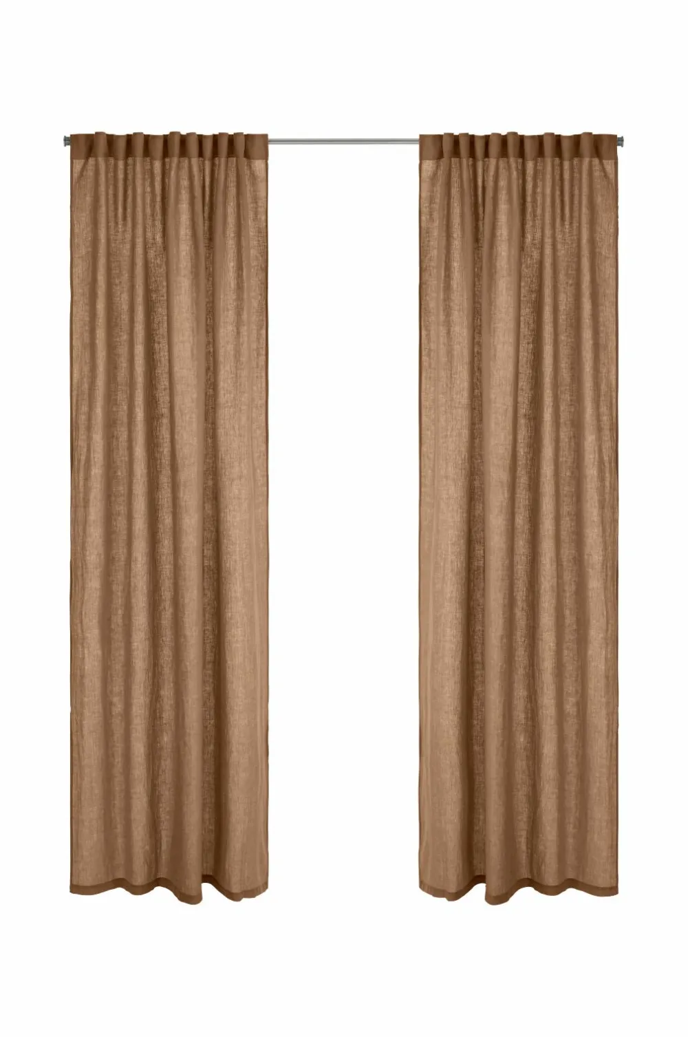 To multibåndslængder i vasket hør med smuk struktur. Multibåndet gør, at du enten kan hænge gardinerne direkte på en gardinstang gennem de skjulte stropper eller anvende ringe, nålekroge eller fingerkroge. Snoren i rynkebåndet gør, at du let kan skabe ensartede, flotte læg. Kan også bruges med rynkebåndskrog. Bredde 135 cm. Findes i flere længder.