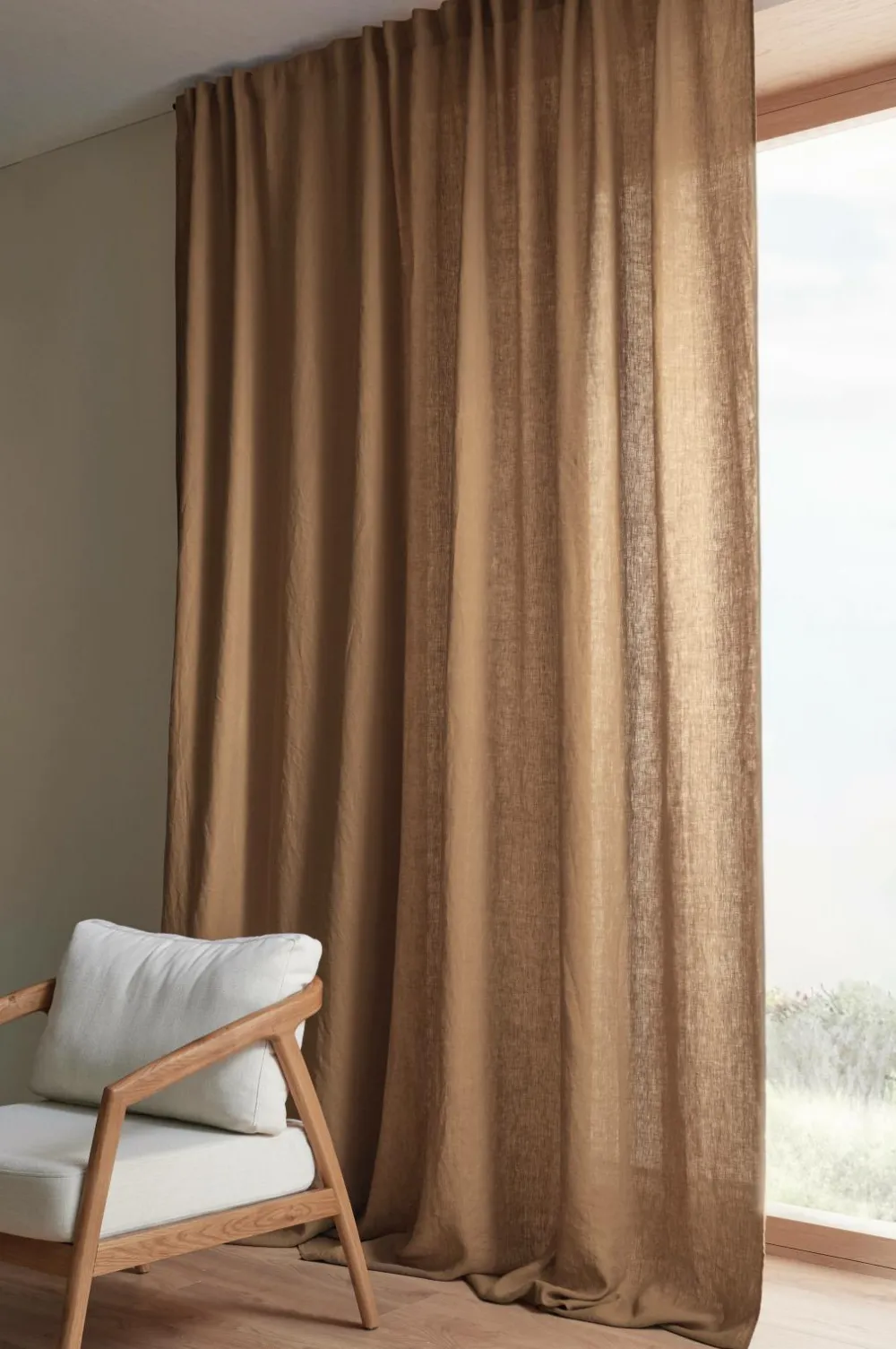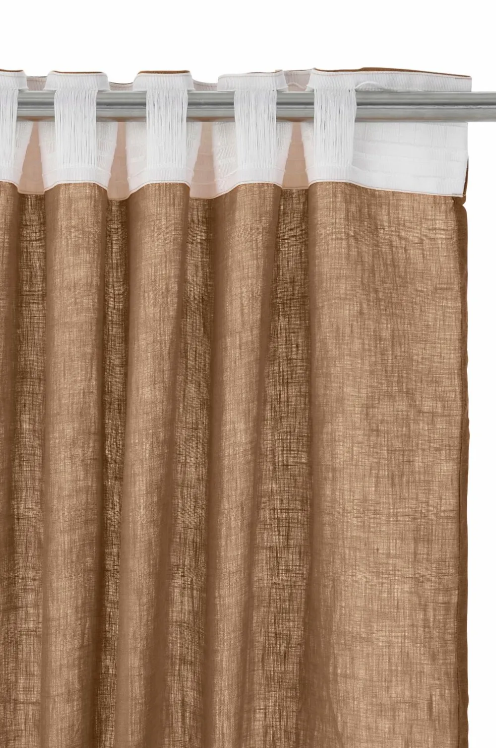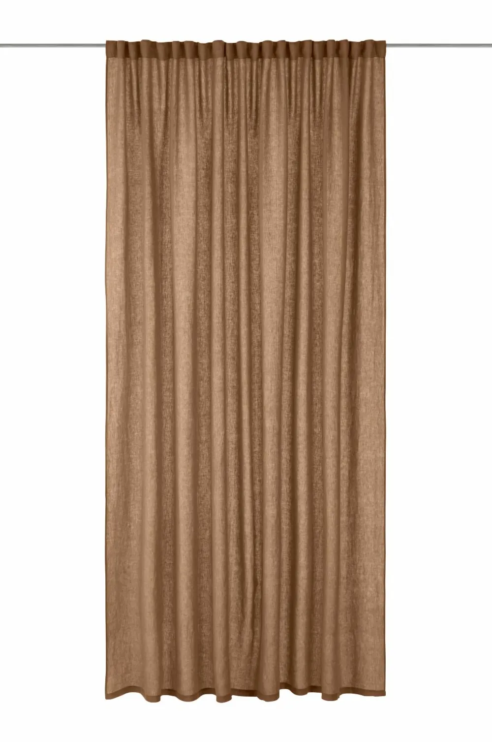 En ekstra bred multibåndslængde i vasket hør med smuk struktur. Multibåndet gør, at du enten kan hænge gardinet direkte på en gardinstang gennem de skjulte stropper eller anvende ringe, nålekroge eller fingerkroge. Snoren i rynkebåndet gør, at du let kan skabe ensartede, flotte læg. Kan også bruges med rynkebåndskrog. Bredde: 270 cm. Længde: 300 cm.