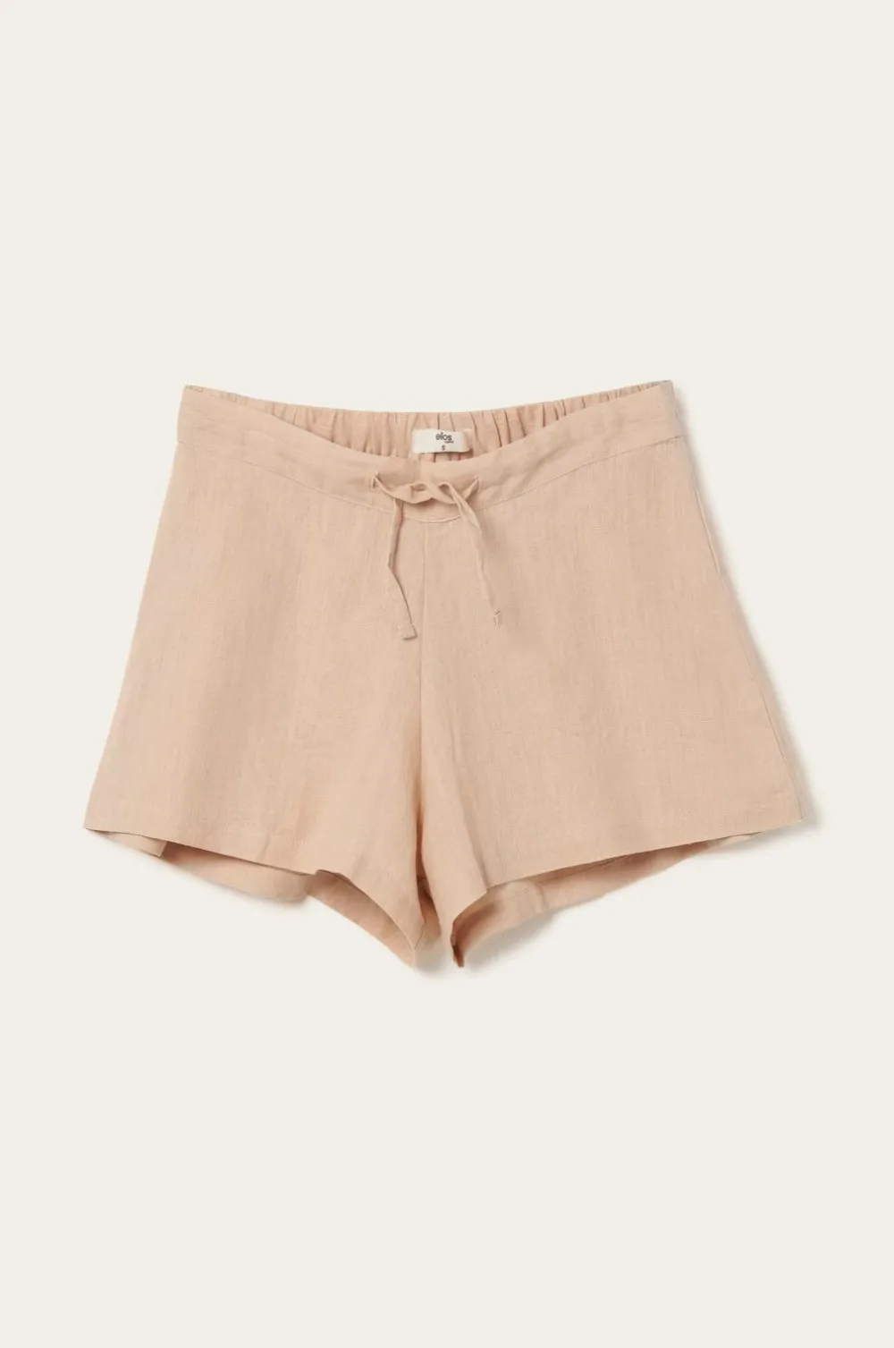 Shorts i blød, kølig og vasket kvalitet af fransk hør. Vide ben. Linning med glat forside og elastik på bagsiden. Løbegang foran. Ingen lommer.