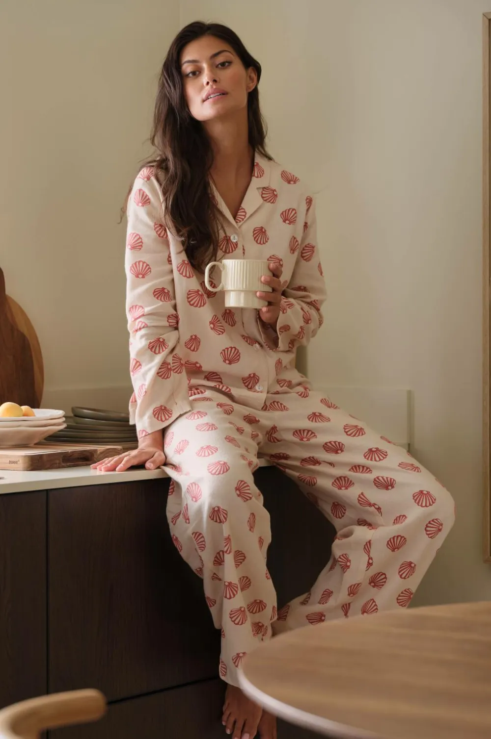 • Natbukser i bomuldsflannel med printet mønster