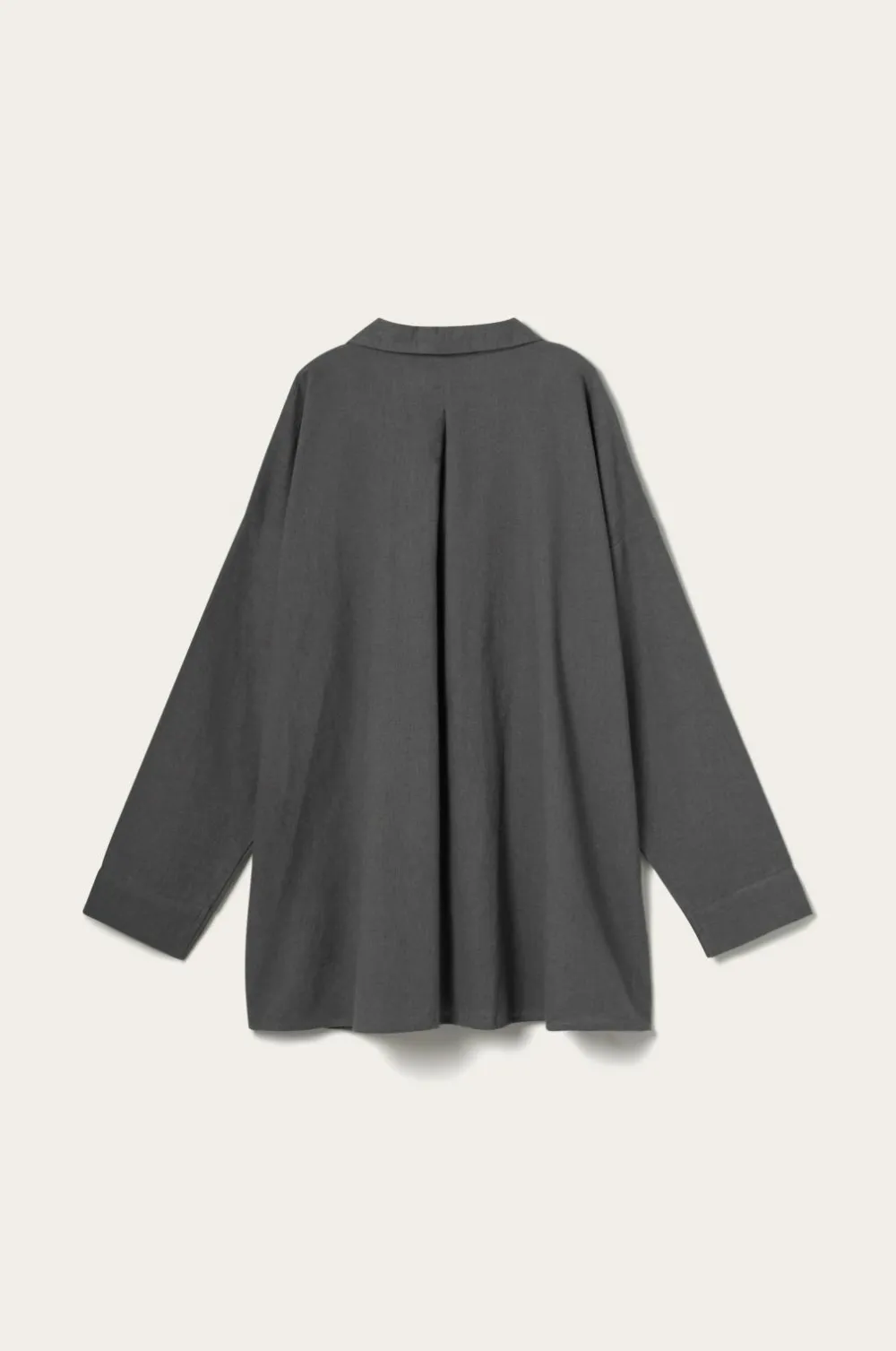 • Pyjamasskjorte i bomuld og hør med blød, vasket afslutning