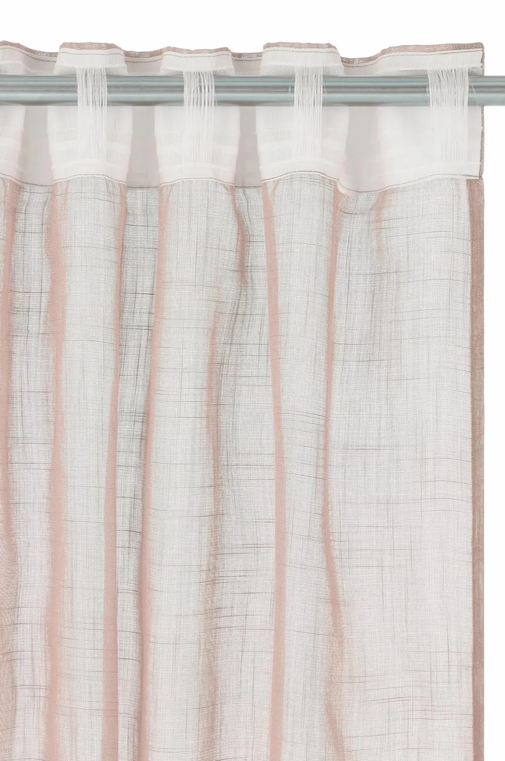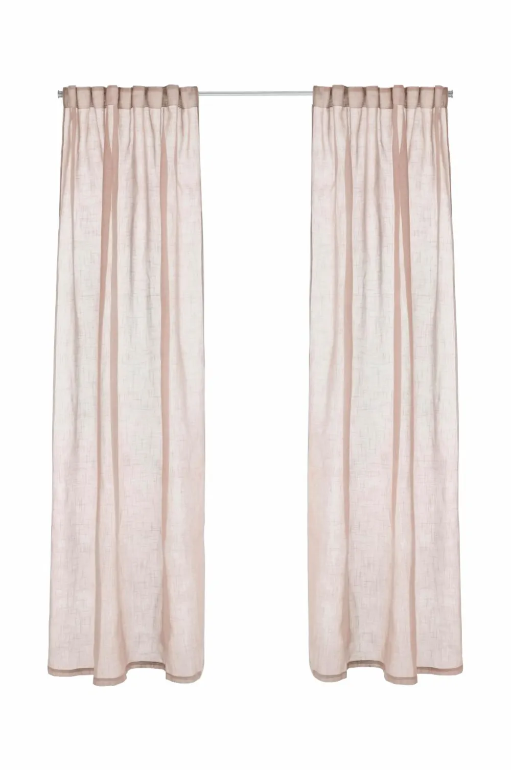 To gardiner med multibånd i luftig kvalitet med let struktur i hørlook. Multibåndet gør, at du enten kan hænge gardinerne direkte på en gardinstang gennem de skjulte stropper eller anvende ringe, nålekroge, rynkebåndskroge eller fingerkroge. Snoren i rynkebåndet gør, at du let kan skabe ensartede, flotte læg. Bredde 134 cm. Tre længder: 220, 250 og 300 cm.