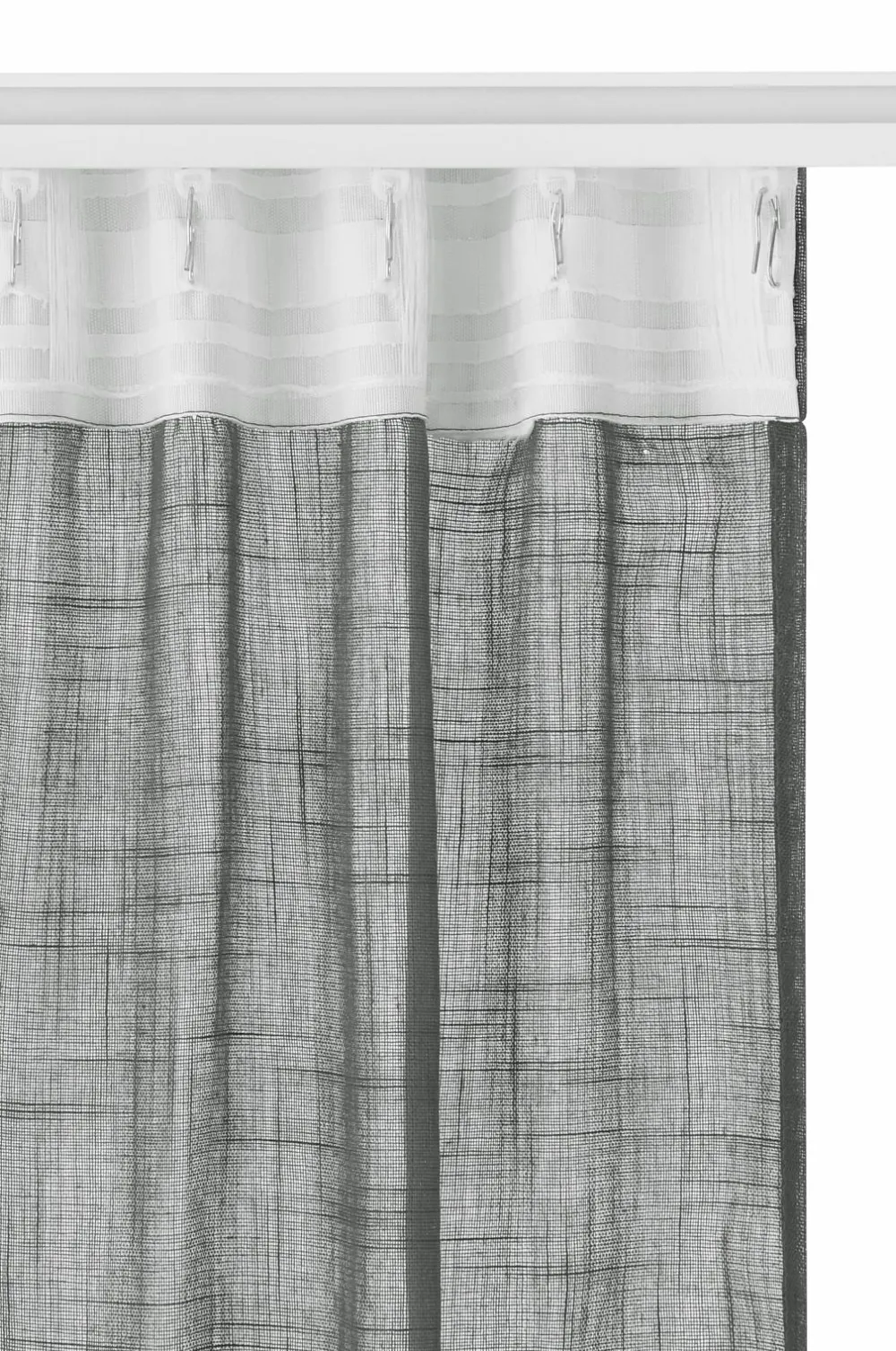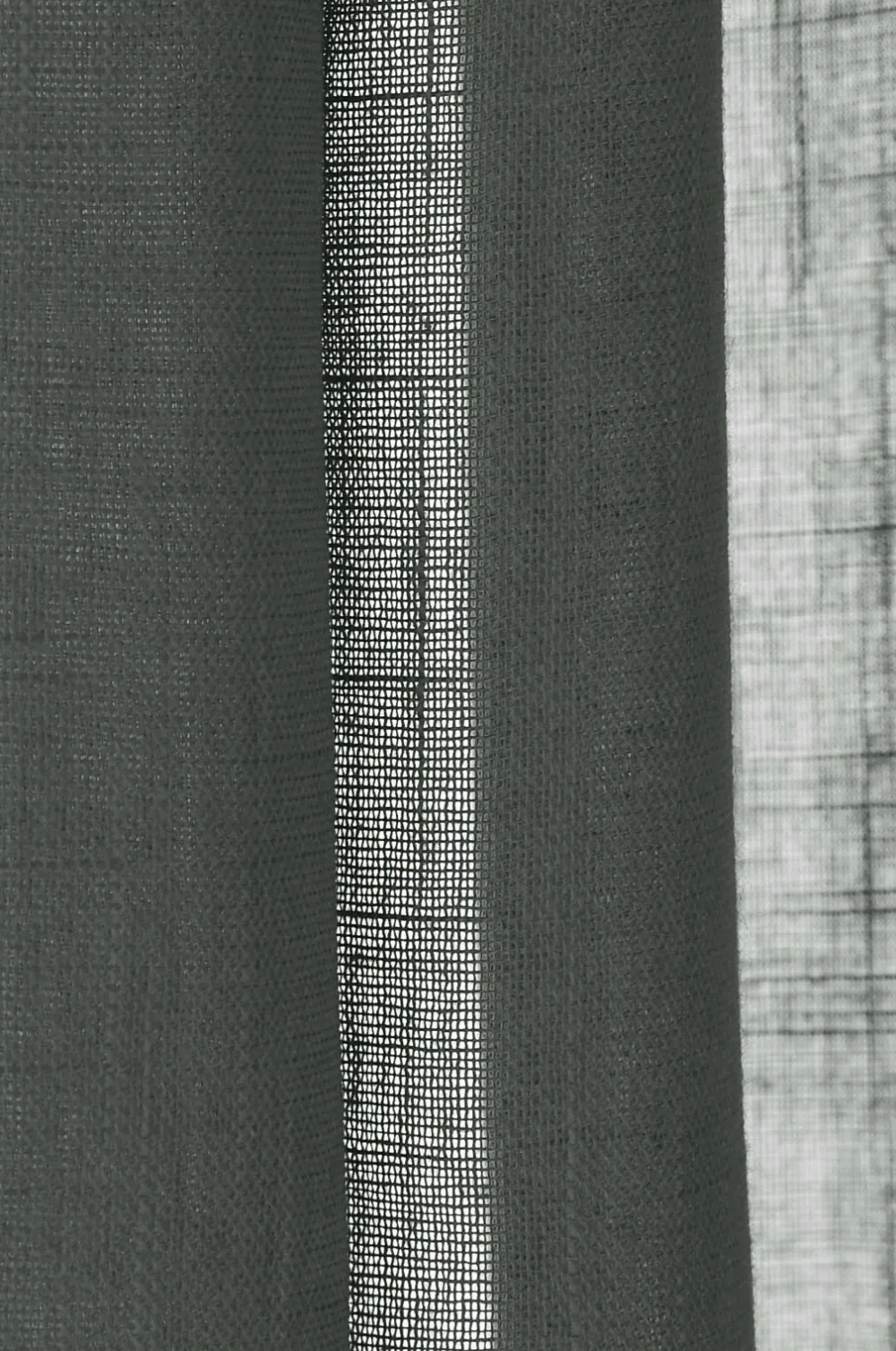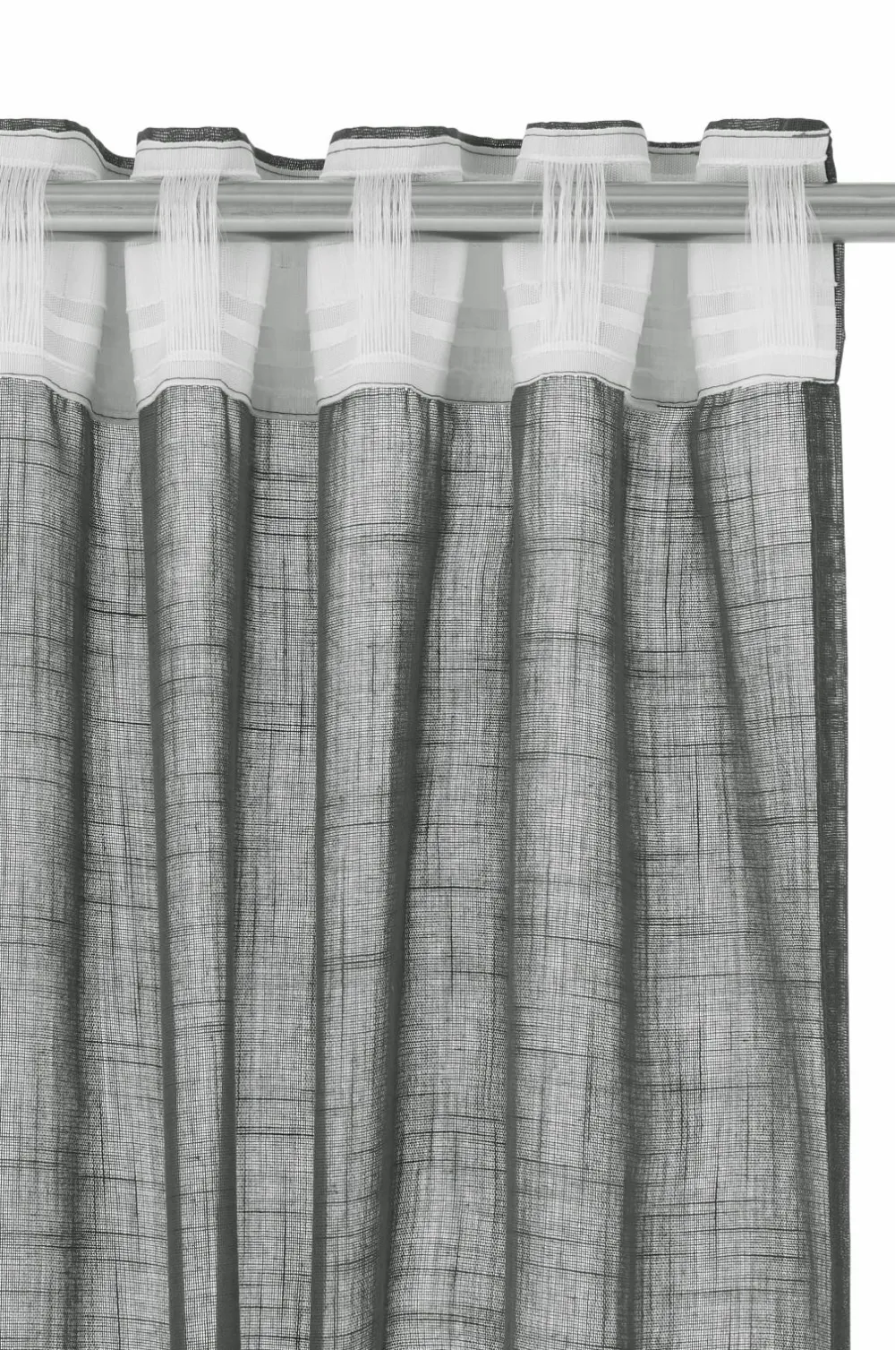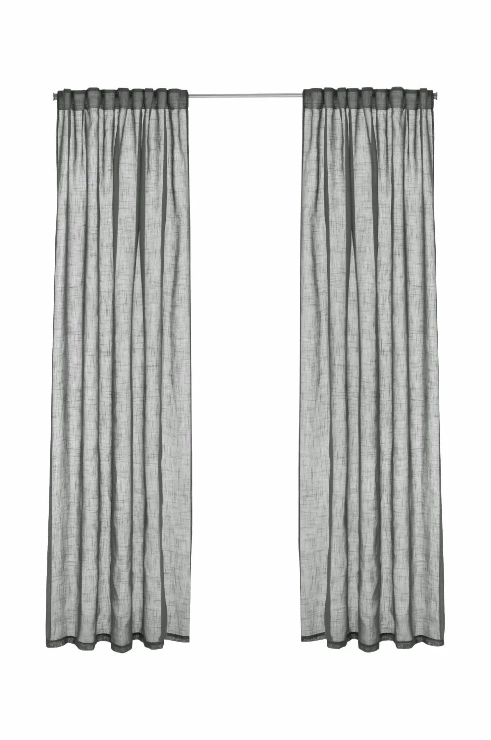 To gardiner med multibånd i luftig kvalitet med let struktur i hørlook. Multibåndet gør, at du enten kan hænge gardinerne direkte på en gardinstang gennem de skjulte stropper eller anvende ringe, nålekroge, rynkebåndskroge eller fingerkroge. Snoren i rynkebåndet gør, at du let kan skabe ensartede, flotte læg. Bredde 134 cm. Tre længder: 220, 250 og 300 cm.