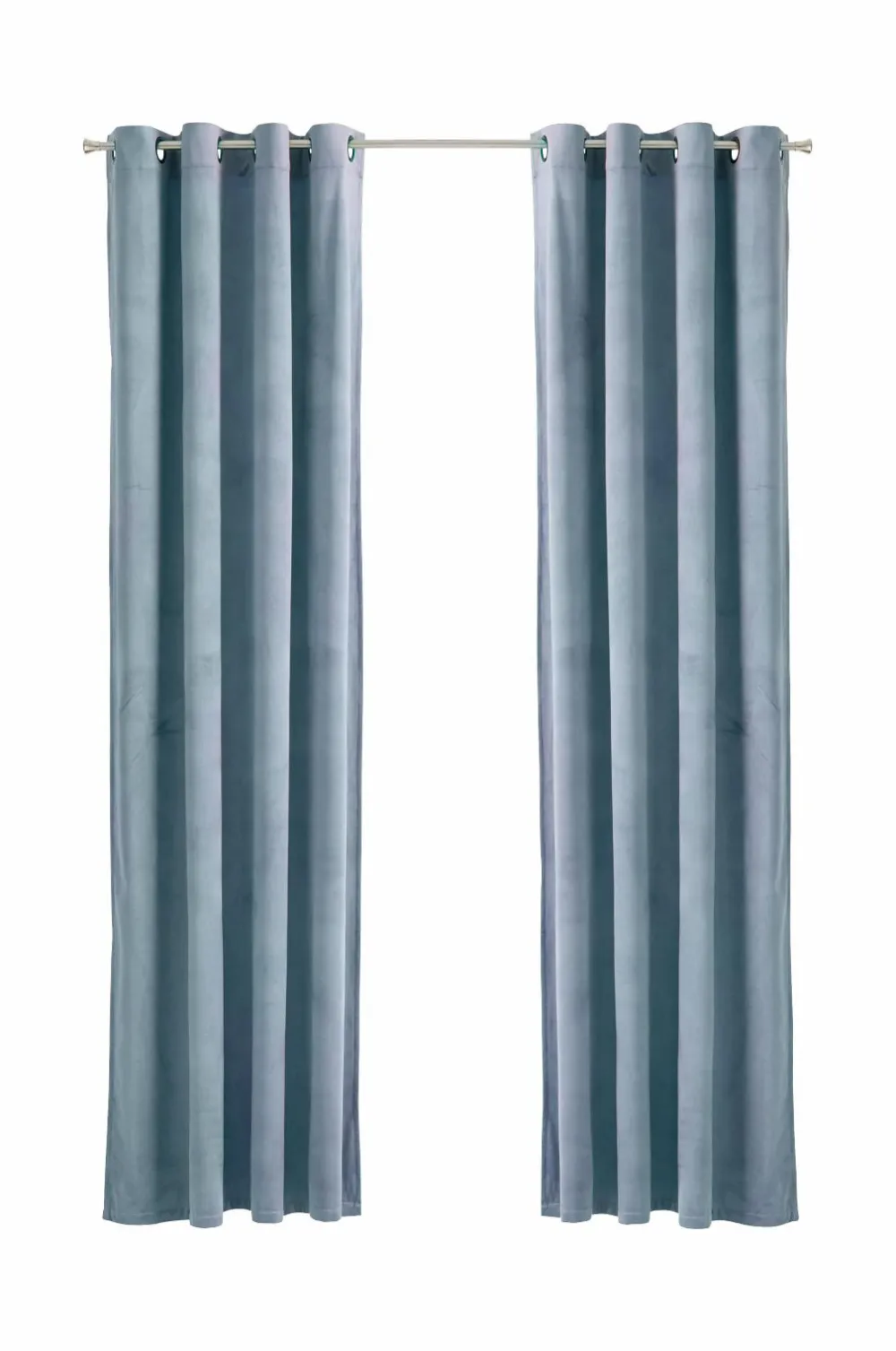 Velourgardiner med fin glans og blødt fald. Sejlringe i antikmessingfarvet metal. Bredde 140 cm. To længder: 220 og 250 cm.