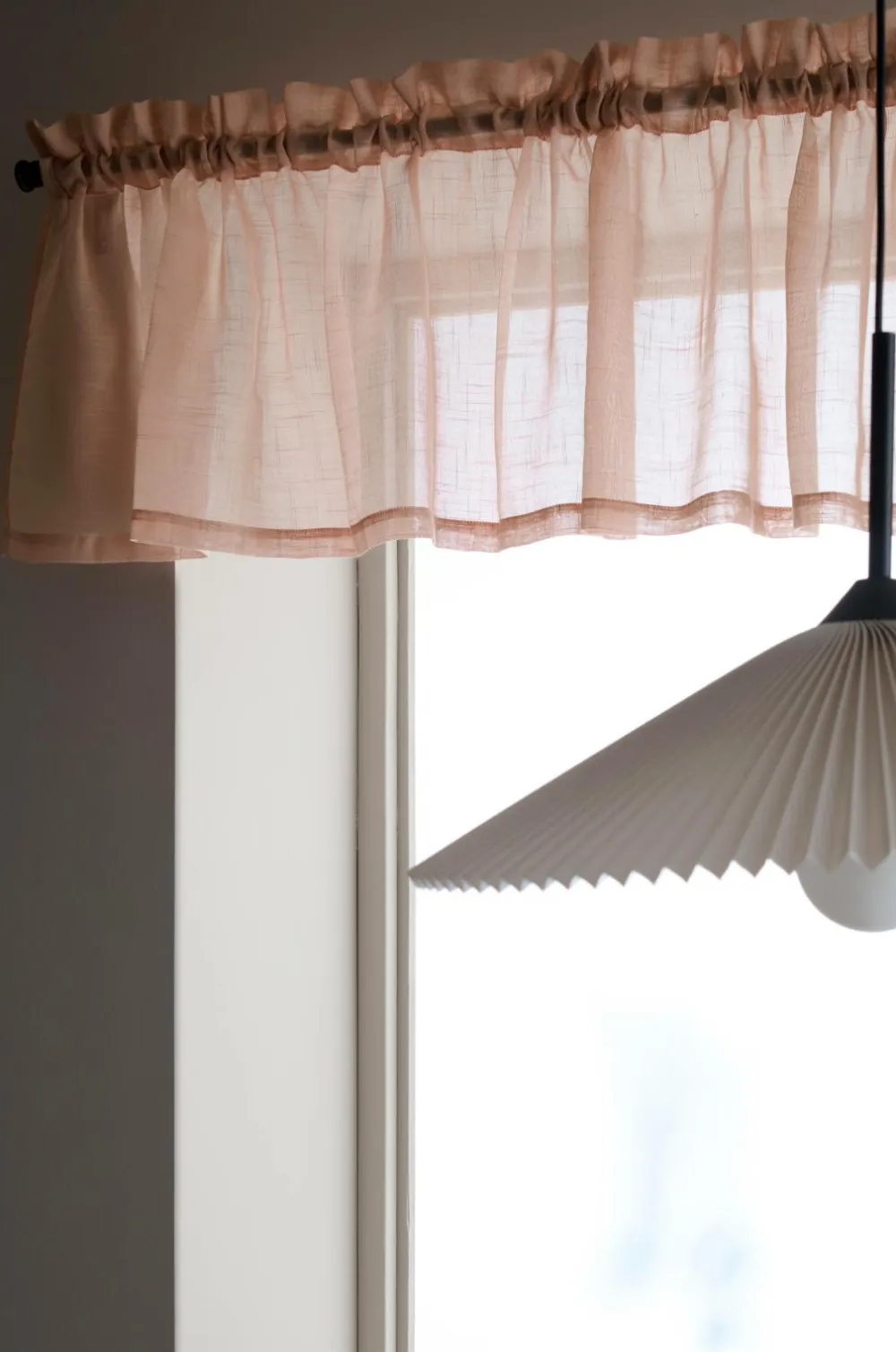 Kanalkappe af luftig polyester med struktur i hørlook. Løbegang med 5 cm rynkekant. Str. 50×250 cm.