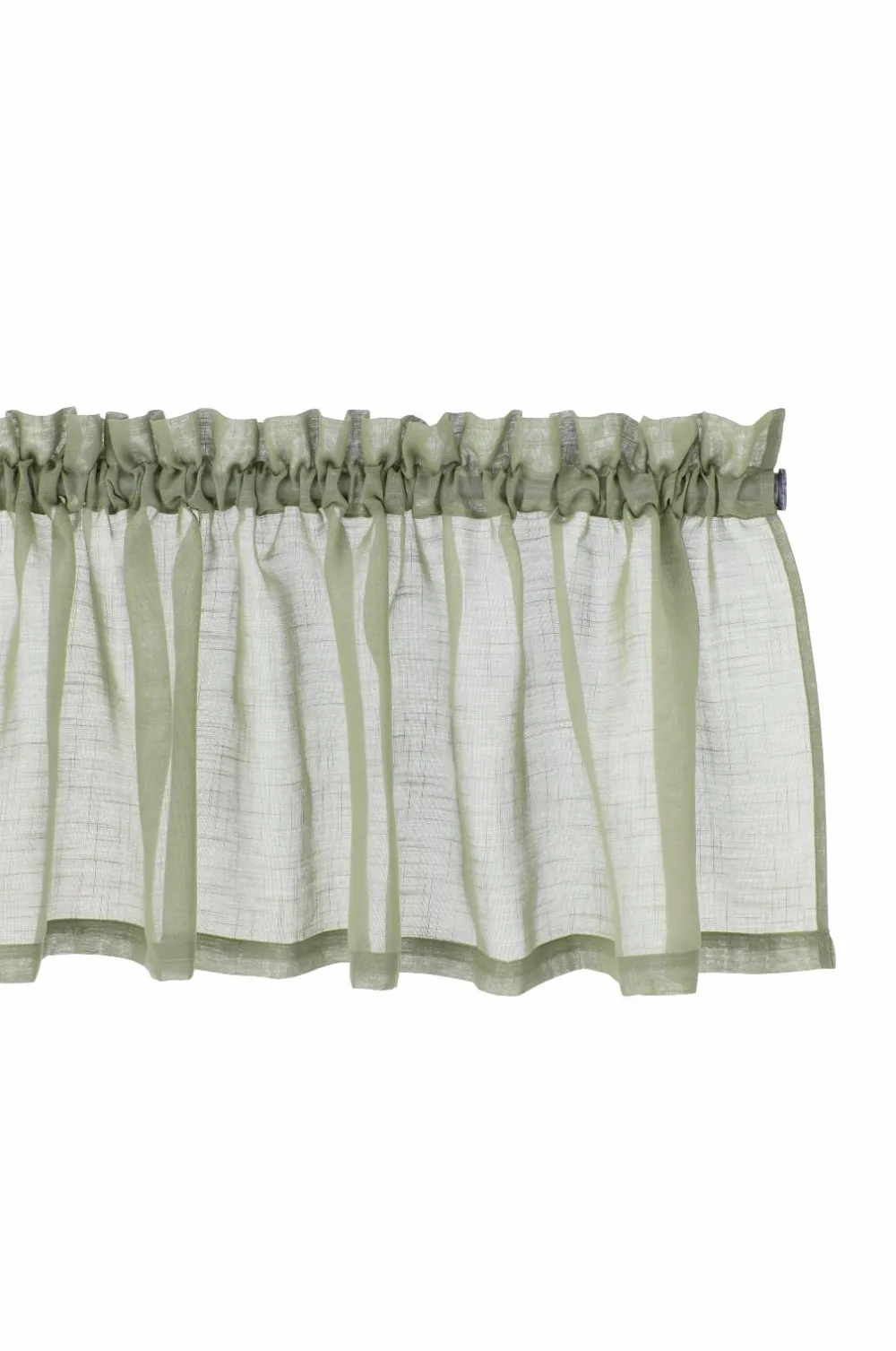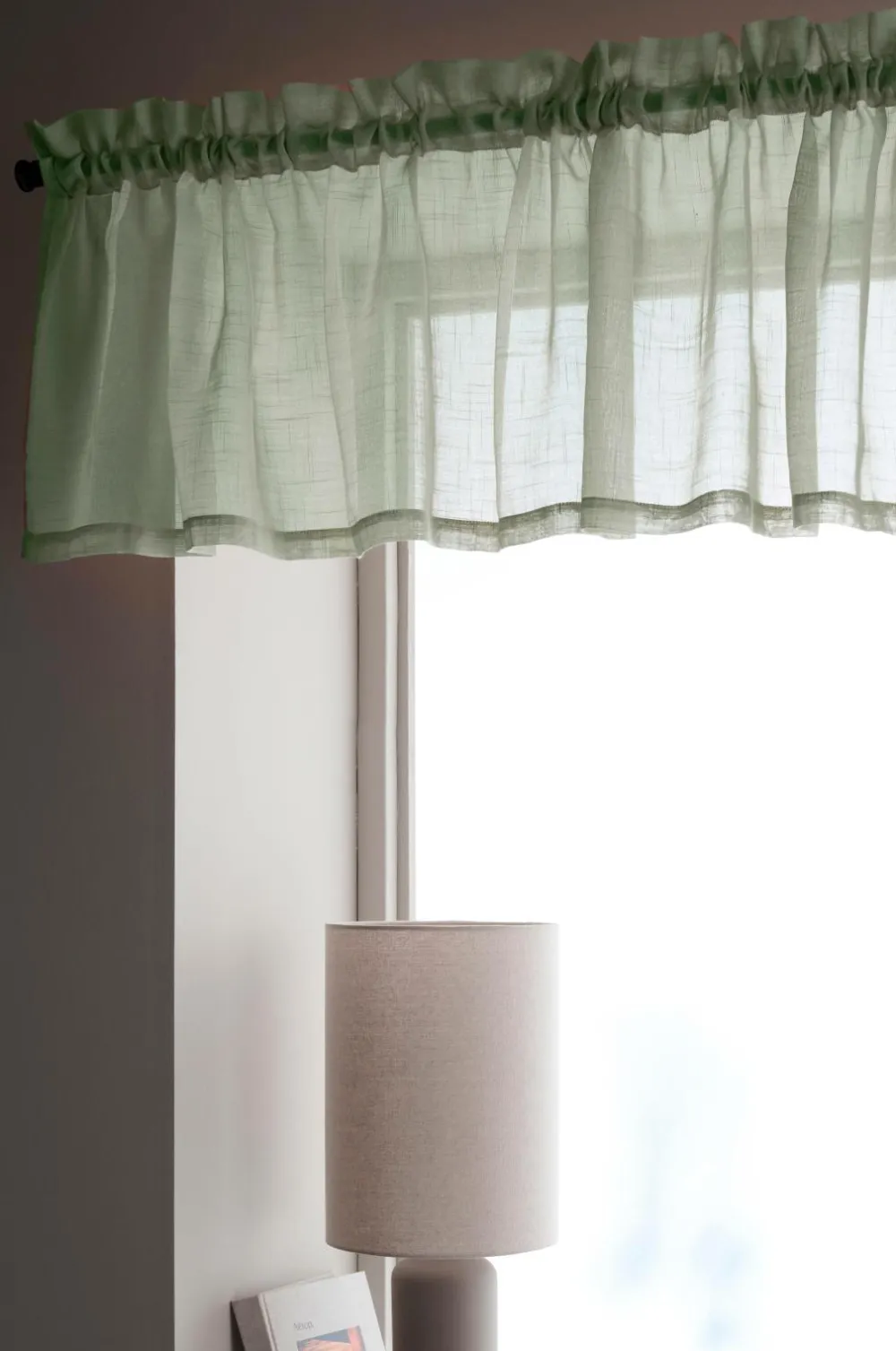 Kanalkappe af luftig polyester med struktur i hørlook. Løbegang med 5 cm rynkekant. Str. 50×250 cm.