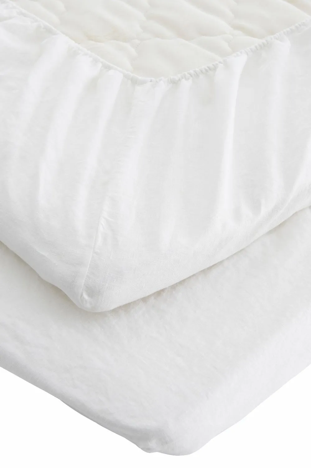 Faconsyet lagen i blød vasket hør med vintagelook. Elastikbånd langs hele kortsiderne holder lagenet på plads. Passer til madrasser op til 18 cm. Lagenet findes i str. 90×200, 120×200, 140×200, 160×200 og 180×200 cm. Vægt 165 g/m2.