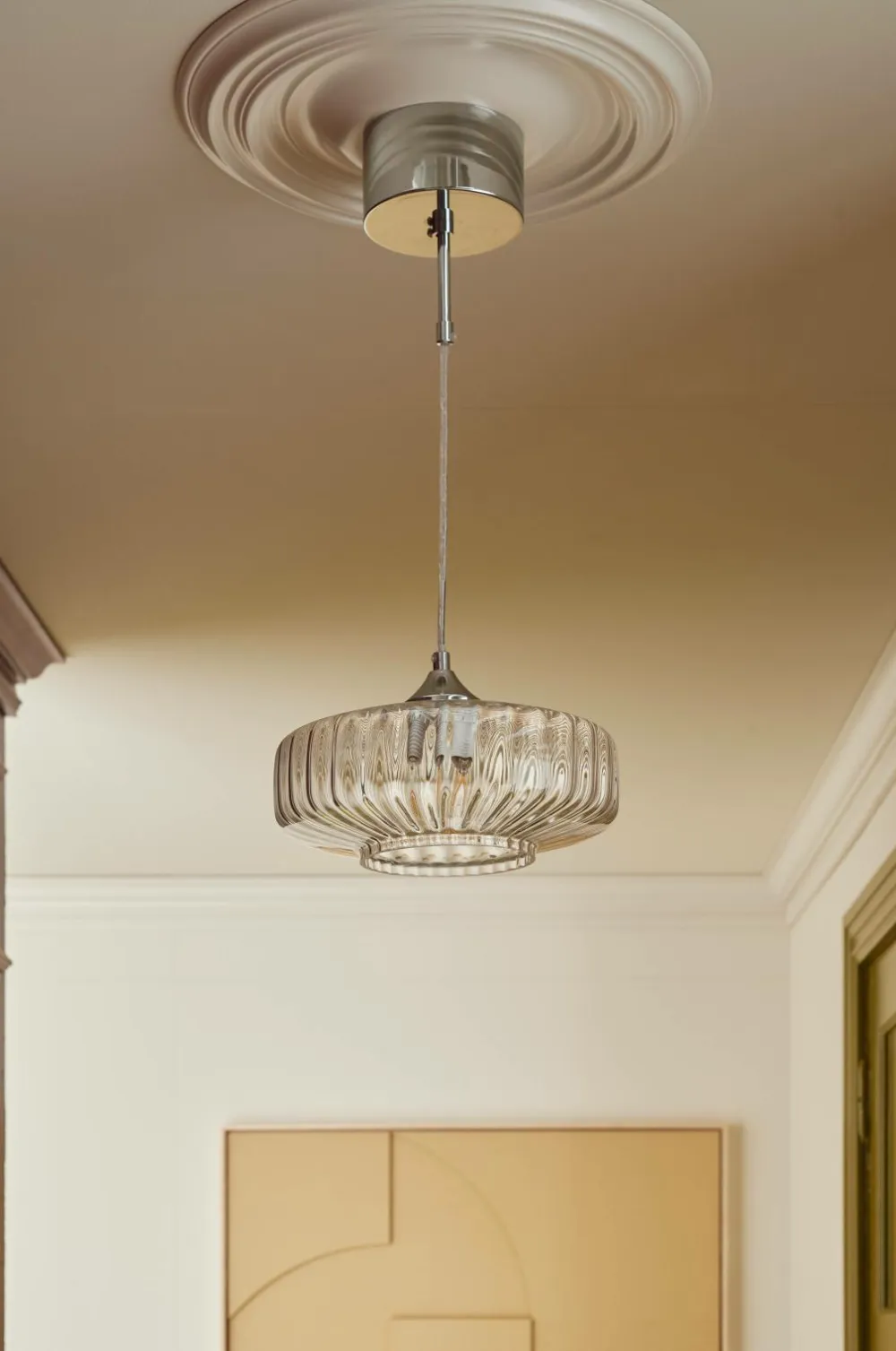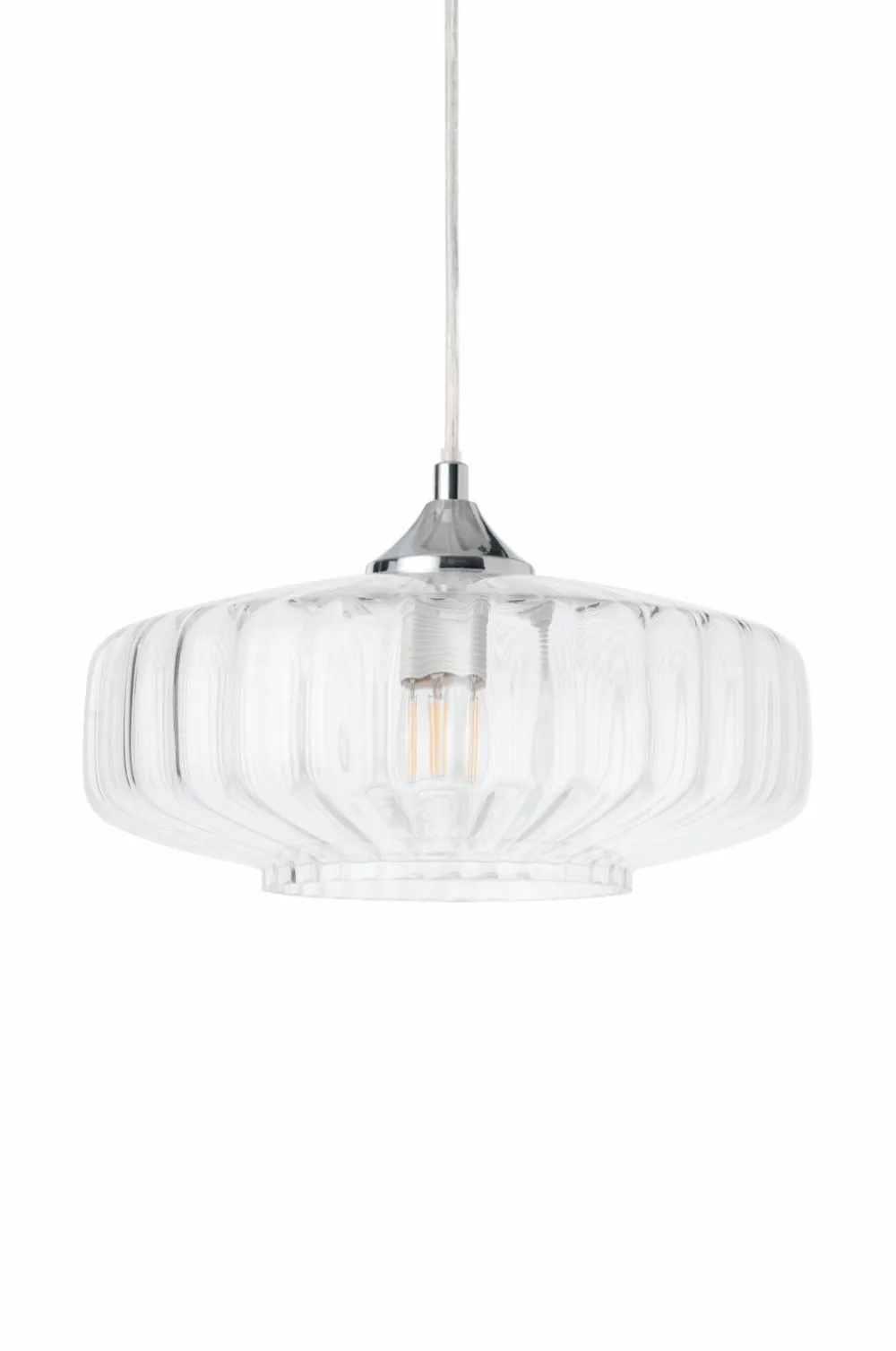 • Loftlampe i klart glas med indvendig, ribbet struktur