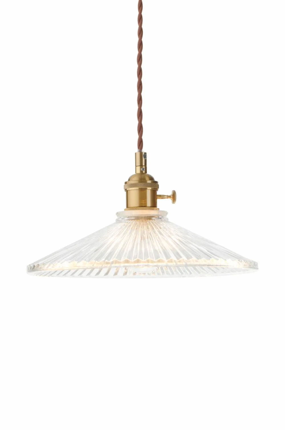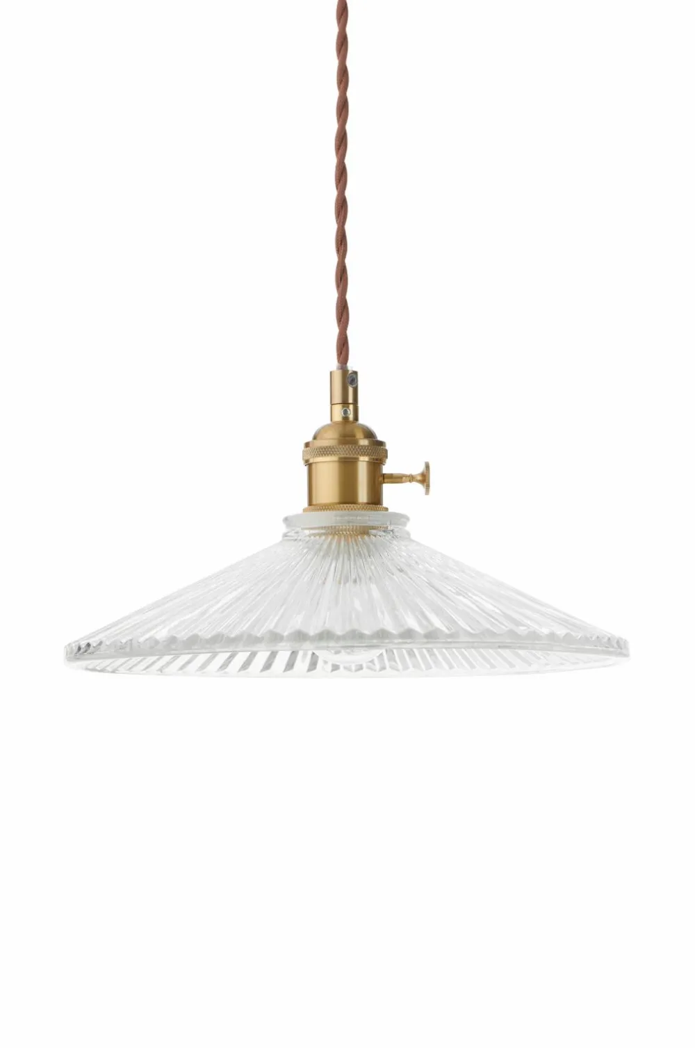 • Loftslampe i gennemsigtig glas og metal med en messingfinish