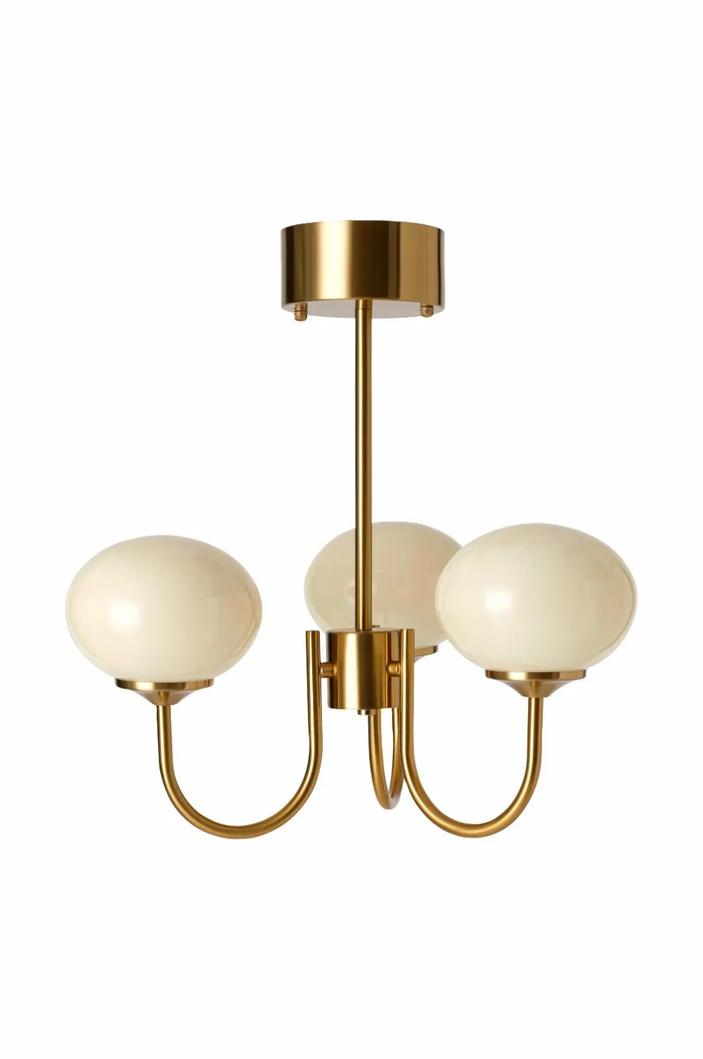 • Loftslampe med metalramme og tre lampeskærmer i glas