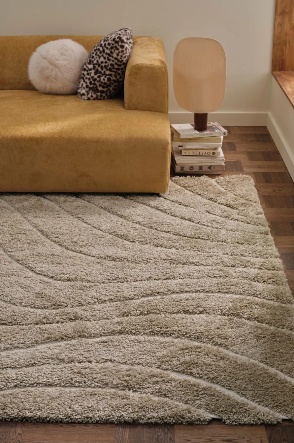 • Tuftet, vedligeholdelseslet ryatæppe med tæt, tyk luv og reliefmønster