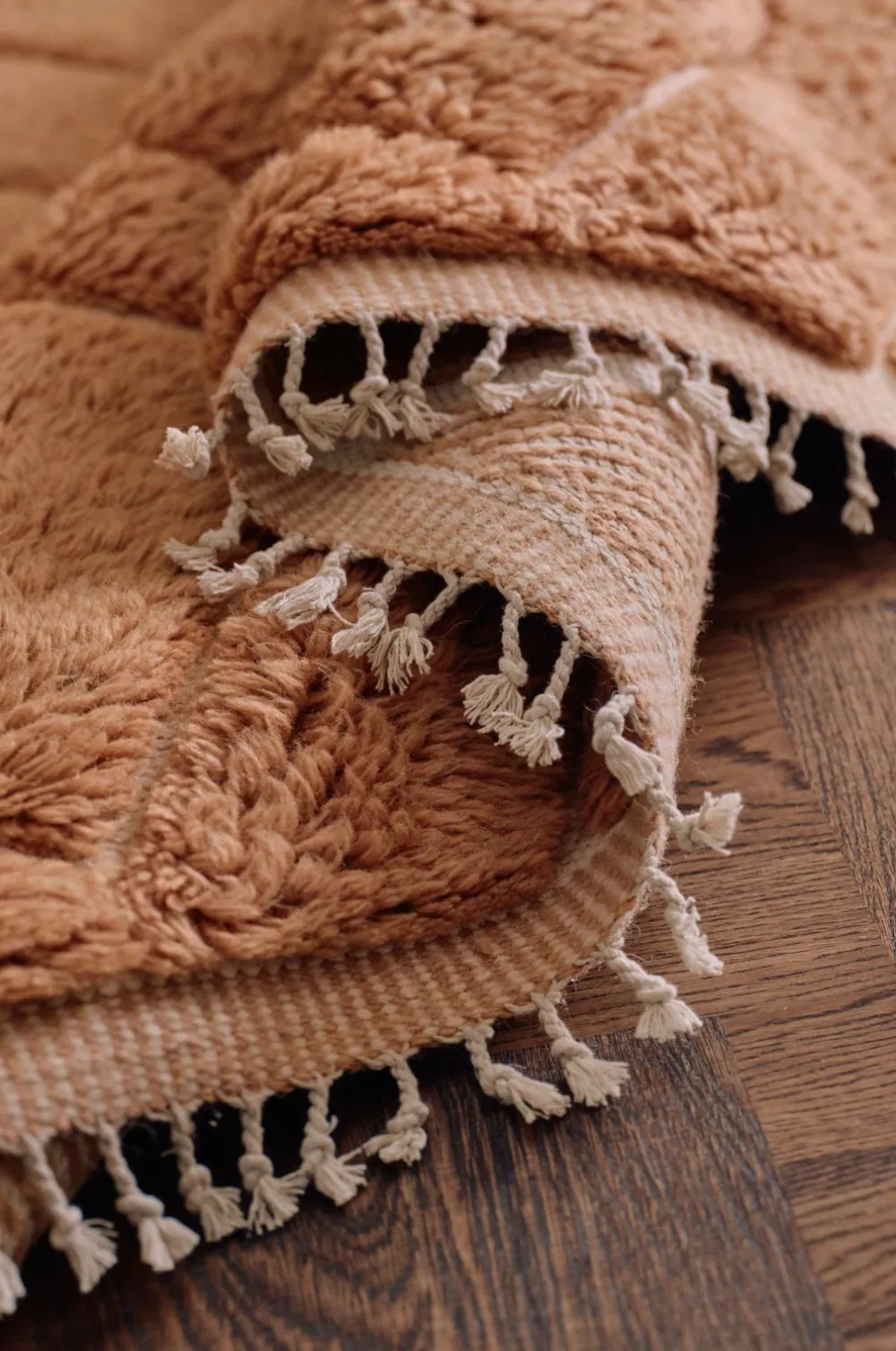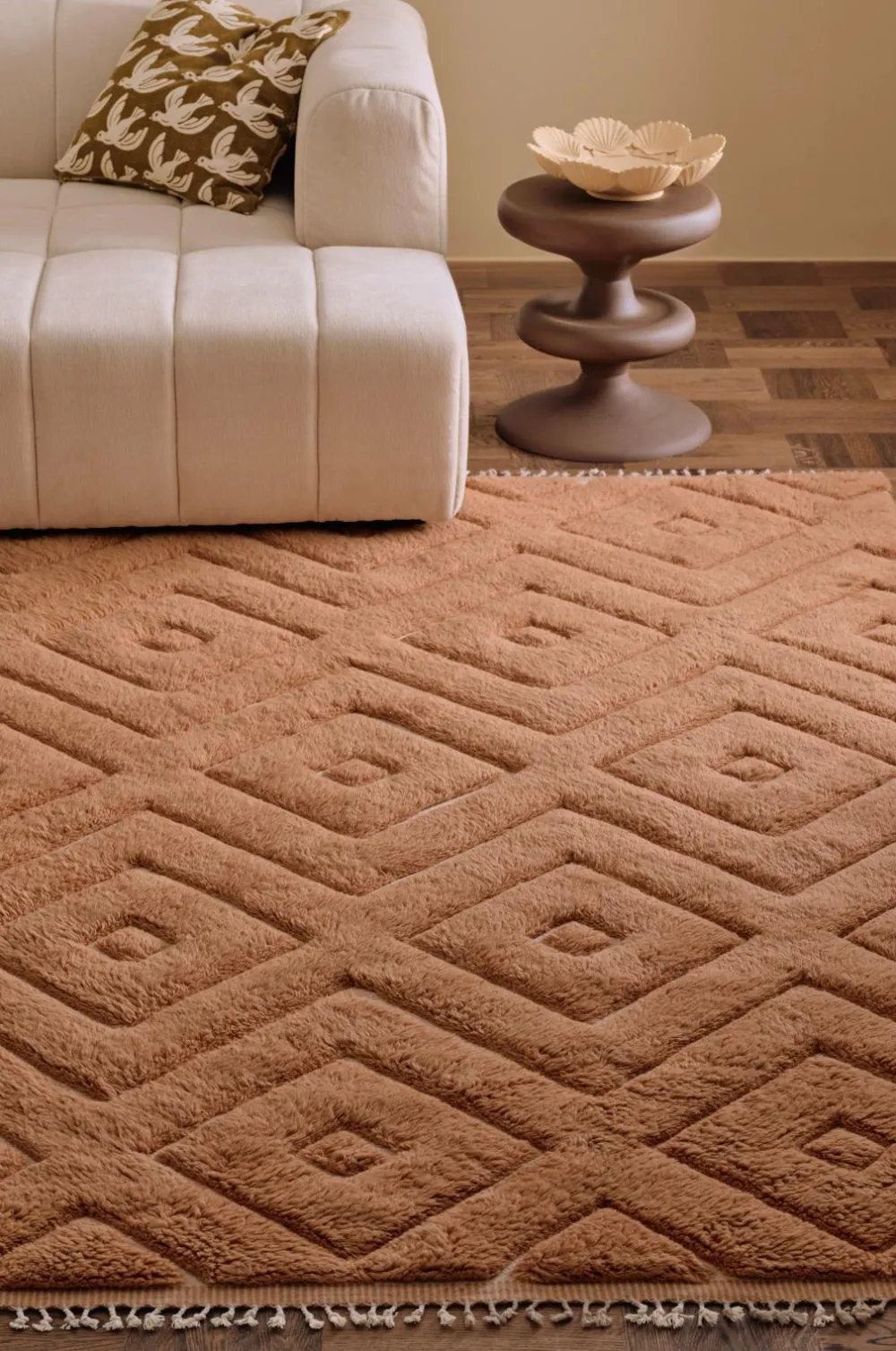 • Rengøring: Ryatæpper i uld har på grund af den lange luv og uldens fibre en tendens til at fnugge i starten. Dette er en naturlig og normal proces for denne type tæppe, og vi anbefaler derfor regelmæssig støvsugning af tæppet.