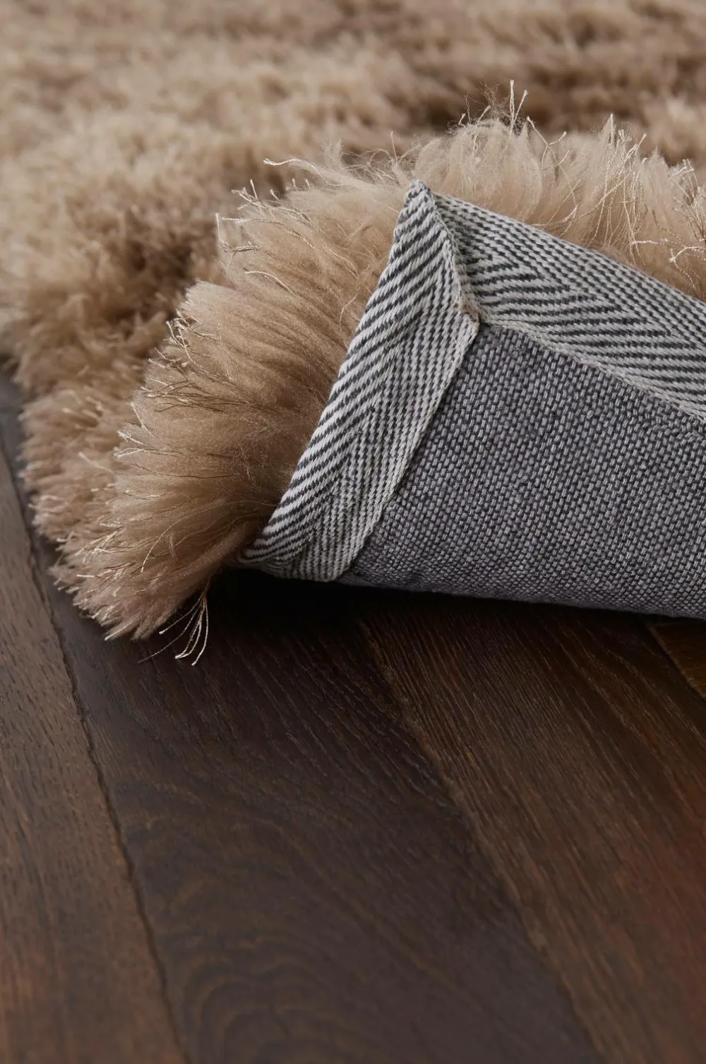 Ryatæppe med meget blød og tæt luv i to forskellige garner, en mat og en blank, som giver et levende udtryk. Luvhøjde 7 cm.