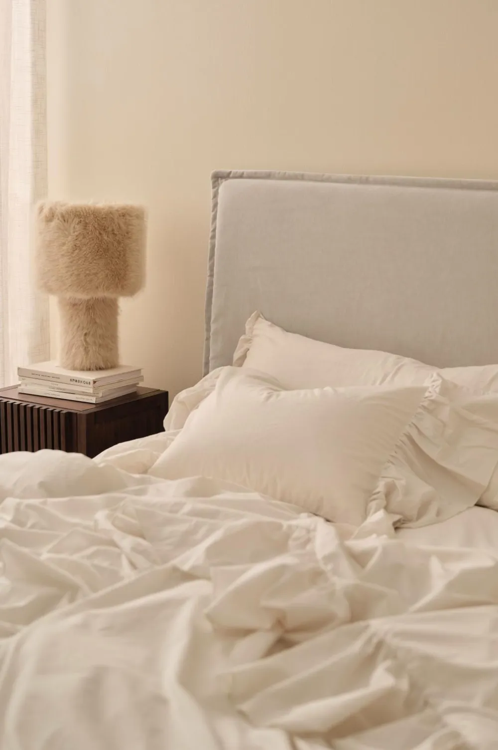 • Et betræk, som du trækker over dit hovedgærde. Betrækket har en løs pasform, afhængigt af dybden på dit hovedgærde, hvilket giver sengen et afslappet look.