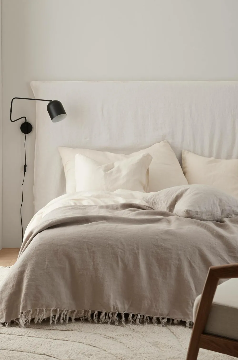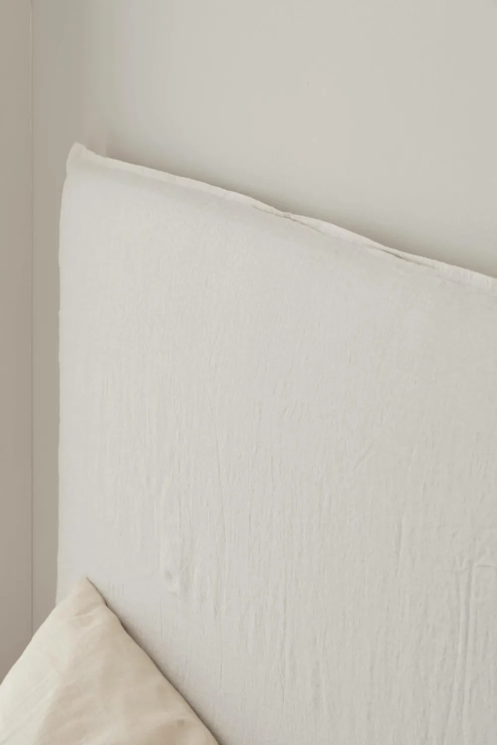 Et betræk i hør, som du trækker over din sengegavl. Betrækket har løs pasform, afhængigt af hvor dyb din sengegavl er, og sengen får et afslappet udtryk. Dobbelte denimsømme på 3 sider. Betrækket er i en blød og behagelig vasket hørkvalitet fra Frankrig.
