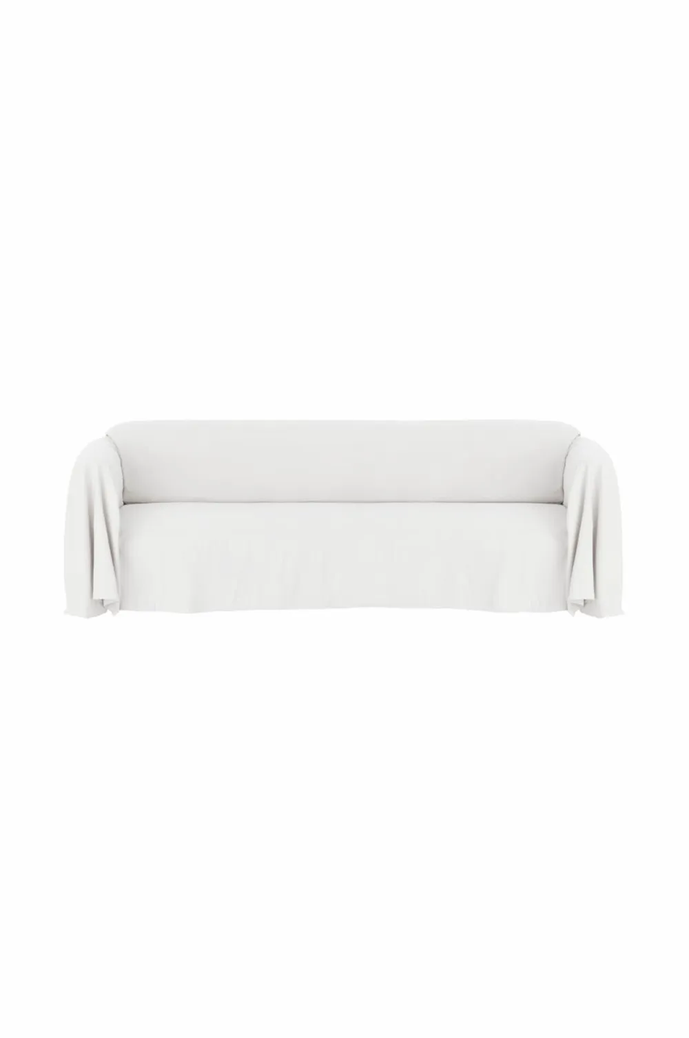 Stofbetræk i kraftig, blødvasket kvalitet. Et helt stykke stof, der draperes over sofaen. Størrelse 410×260 cm.
