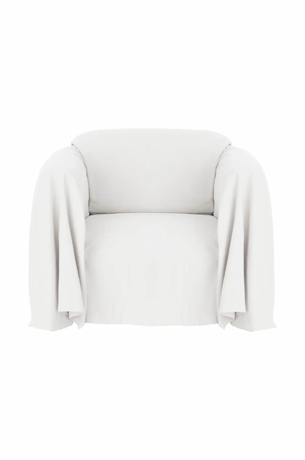 Stofbetræk i kraftig, blødvasket kvalitet. Et helt stykke stof, der draperes over lænestolen. Størrelse 290×260 cm.