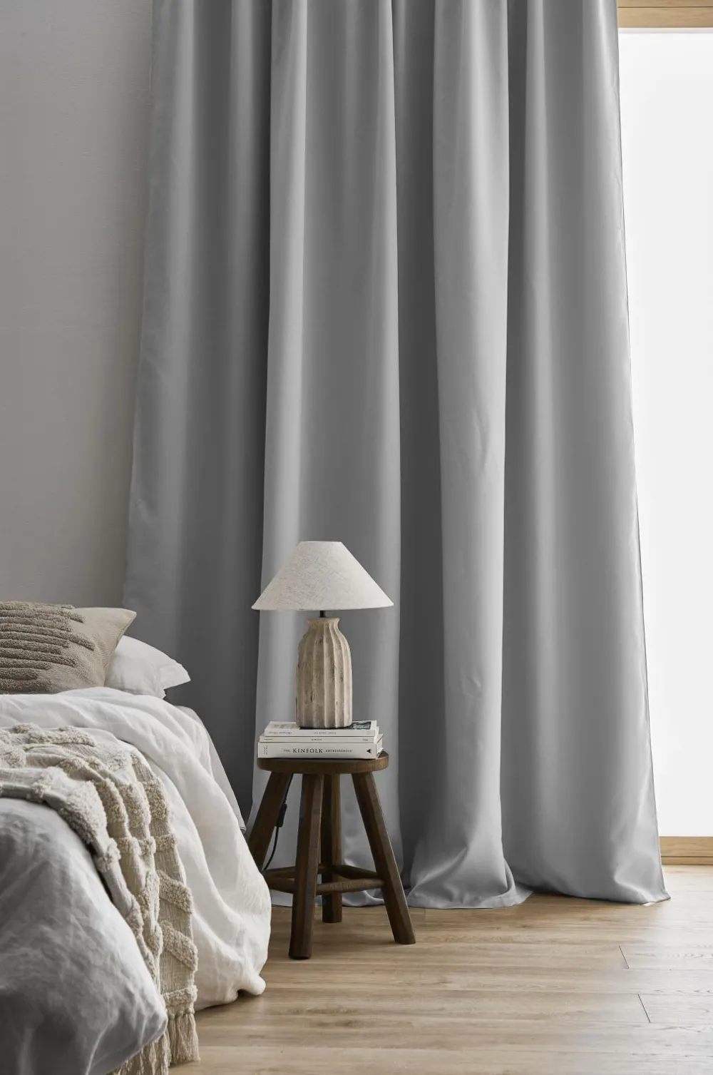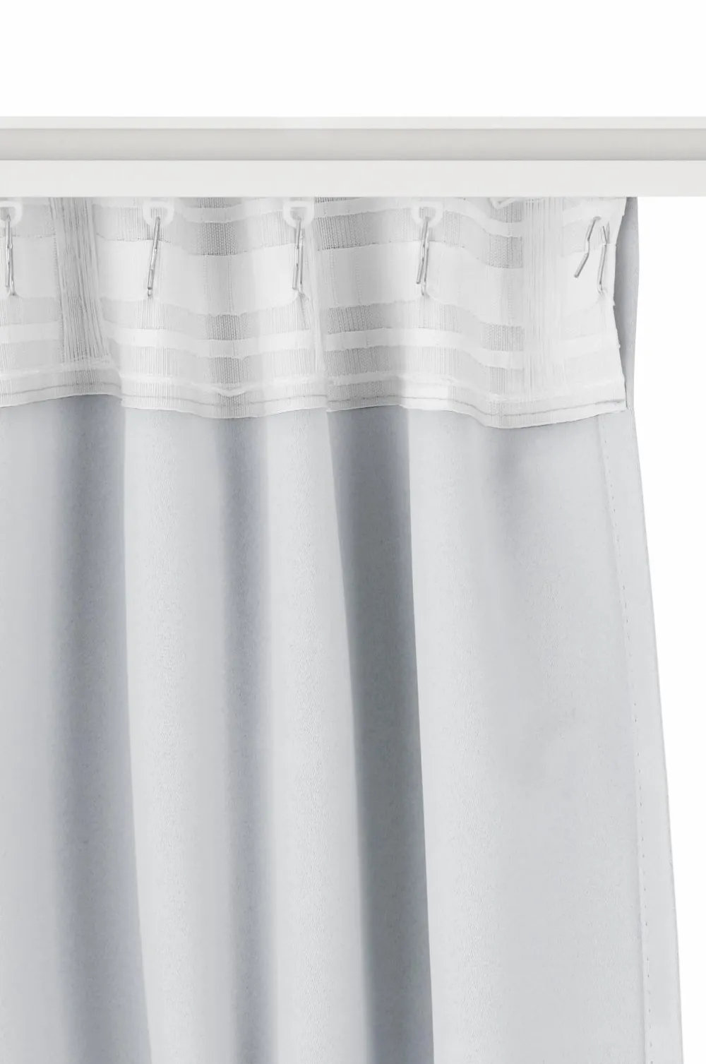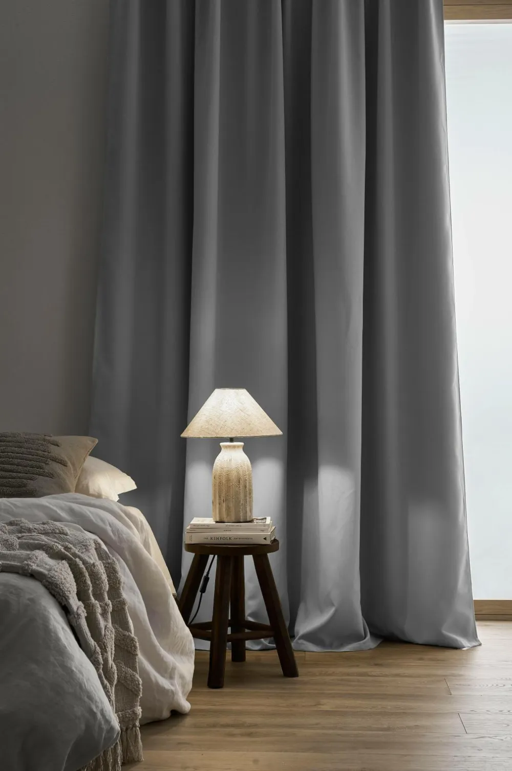Mørklæggende gardin i kraftig kvalitet. Et vævet mellemlag med indvævede sorte tråde gør, at gardinet lukker 90% af lyset ude. Gardinet har multibånd, hvilket gør, at du enten kan hænge gardinerne direkte på en gardinstang gennem de skjulte stropper eller anvende ringe, nålekroge eller fingerkroge. Snore i rynkebåndet gør at du let kan skabe ensartede, flotte læg. Mål: 280×300 cm. Sælges enkeltvis.