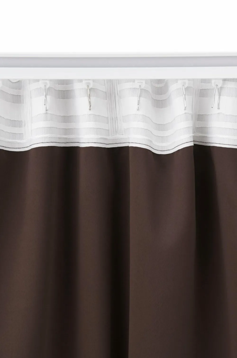 Gardinlængde med multibånd med indvævede sorte tråde som gør, at gardinet lukker lyset ude. Multibåndet gør, at du enten kan hænge gardinet direkte på en gardinstang gennem de skjulte stropper eller anvende ringe, nålekroge eller fingerkroge. Bredde 140 cm. Findes i flere forskellige længder. Sælges i 1-pak.