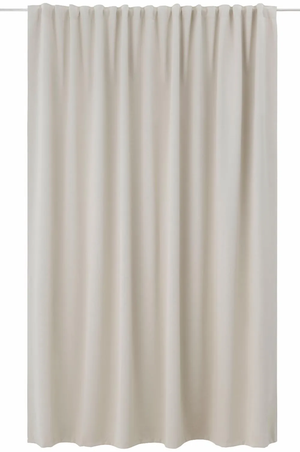 Ekstra bred gardinlængde med multibånd med indvævede sorte tråde som gør, at gardinet lukker lyset ude. Multibåndet gør, at du enten kan hænge gardinet direkte på en gardinstang gennem de skjulte stropper eller anvende ringe, nålekroge eller fingerkroge. Str. 290×300 cm. Sælges i 1-pak.