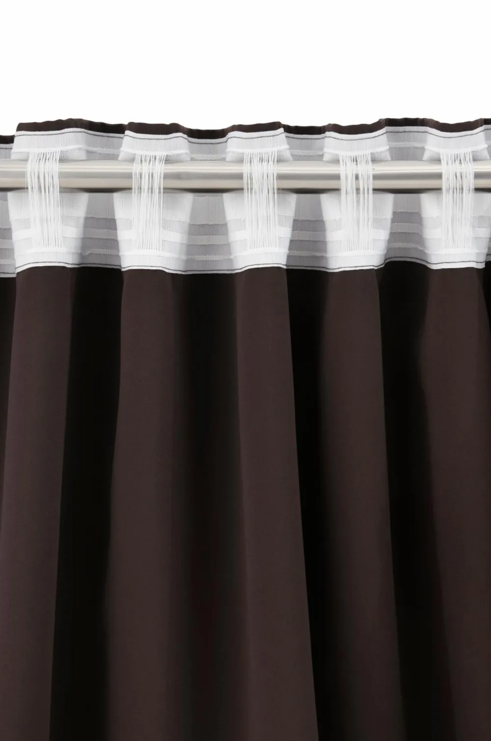Ekstra bred gardinlængde med multibånd med indvævede sorte tråde som gør, at gardinet lukker lyset ude. Multibåndet gør, at du enten kan hænge gardinet direkte på en gardinstang gennem de skjulte stropper eller anvende ringe, nålekroge eller fingerkroge. Str. 290×300 cm. Sælges i 1-pak.