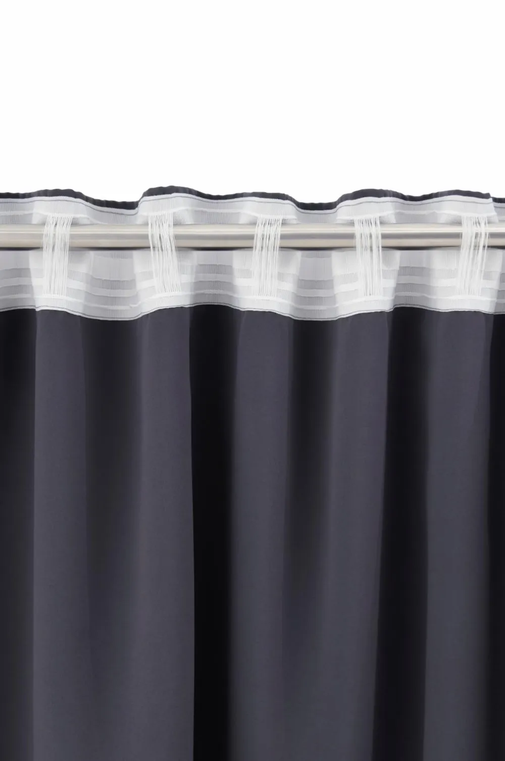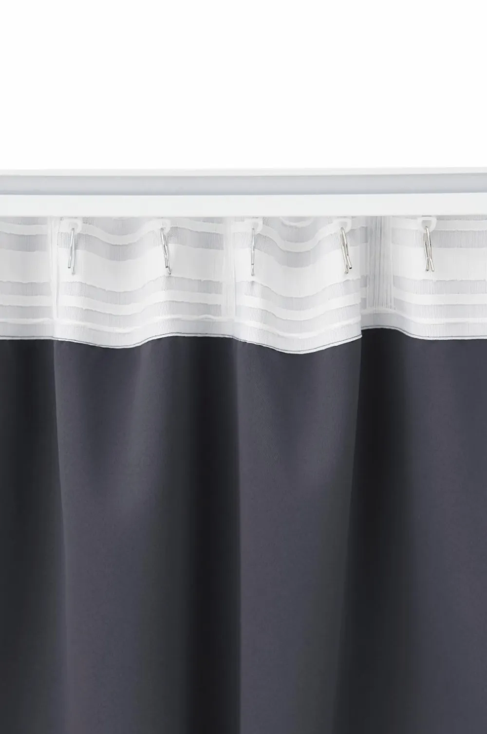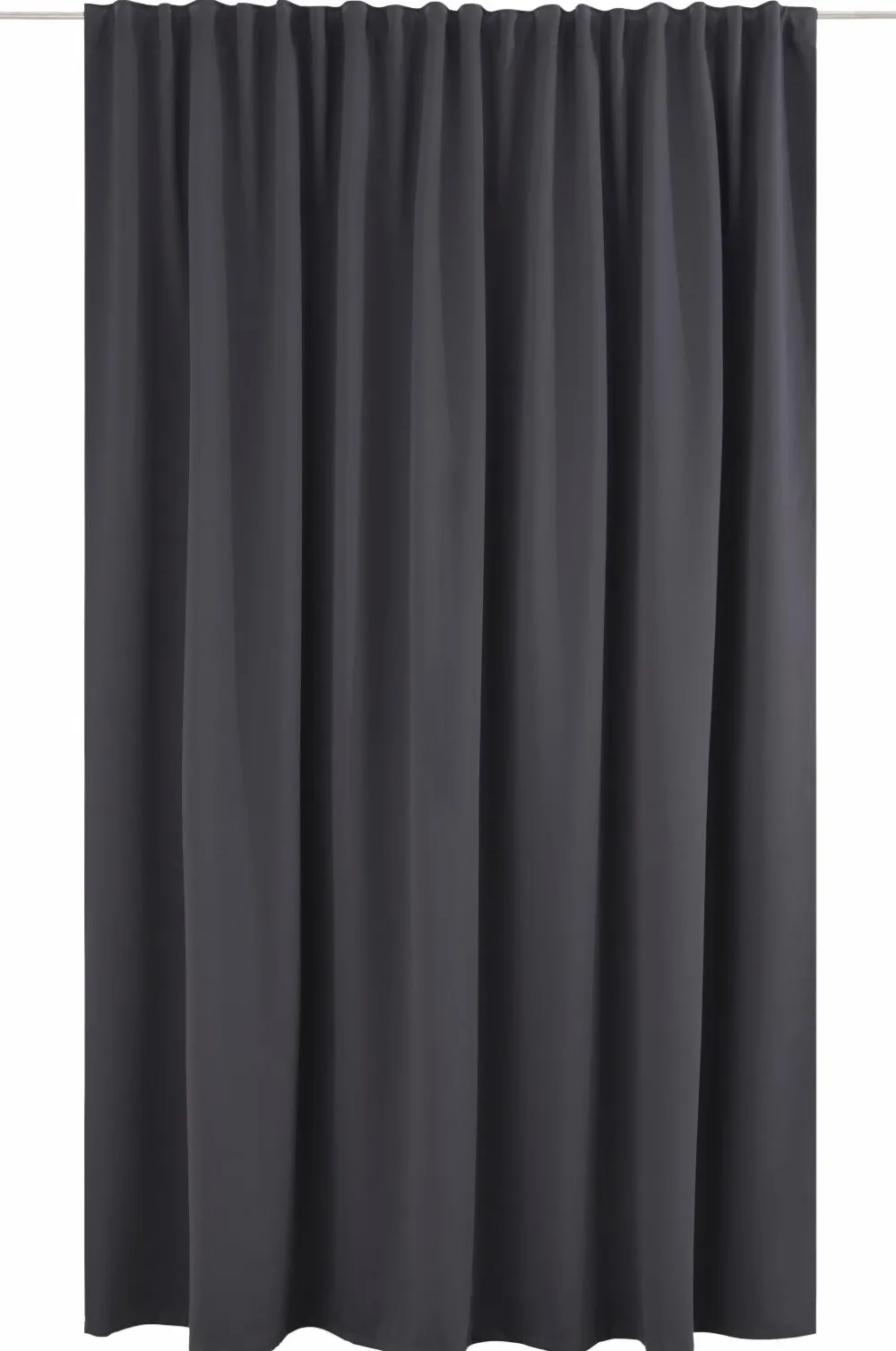 Ekstra bred gardinlængde med multibånd med indvævede sorte tråde som gør, at gardinet lukker lyset ude. Multibåndet gør, at du enten kan hænge gardinet direkte på en gardinstang gennem de skjulte stropper eller anvende ringe, nålekroge eller fingerkroge. Str. 290×300 cm. Sælges i 1-pak.
