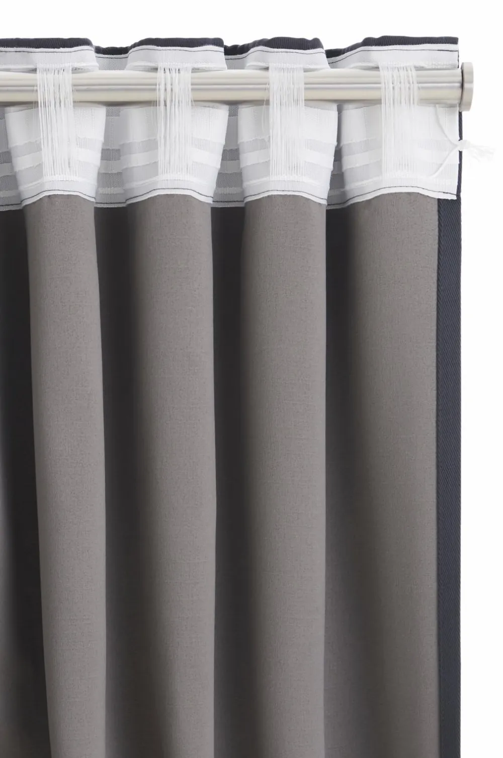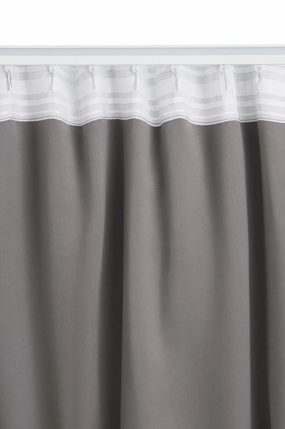 Mørklægningsgardin i twill med fin glans. Et vævet mellemlag med indvævede sorte tråde gør, at gardinet lukker lyset ude. Gardinet har multibånd, som gør at du kan trække det direkte på en gardinstang eller bruge ringe og nålkroge (ikke fingerkroge). Snoren i rynkebåndet gør, at du let kan skabe ensartede, flotte læg. Sælges i 1-pak.
