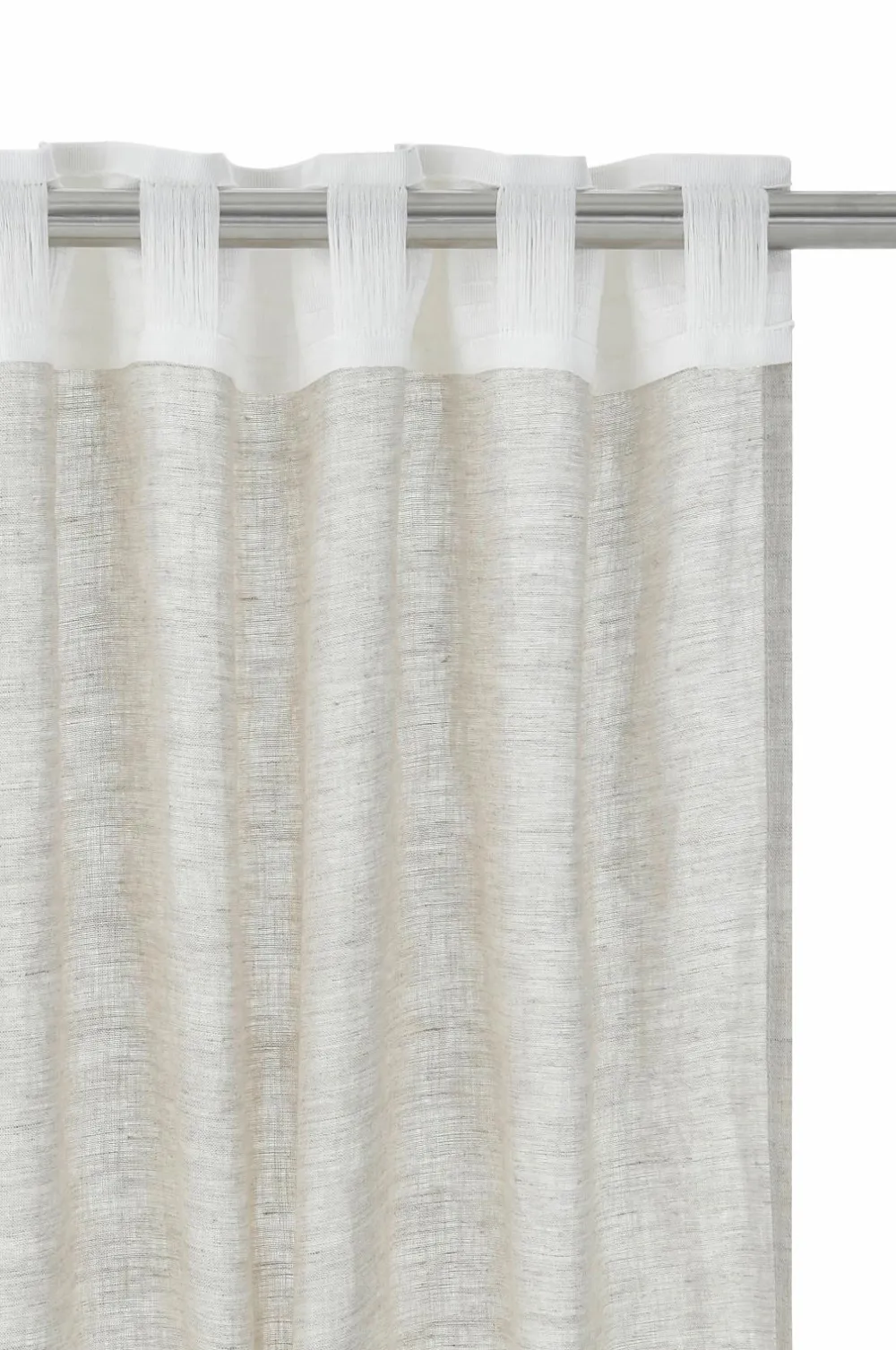 To multibåndslængder i vasket hør med smuk struktur. Multibåndet gør, at du enten kan hænge gardinerne direkte på en gardinstang gennem de skjulte stropper eller anvende ringe, nålekroge eller fingerkroge. Snoren i rynkebåndet gør, at du let kan skabe ensartede, flotte læg. Kan også bruges med rynkebåndskrog. Bredde 135 cm. Findes i flere længder.