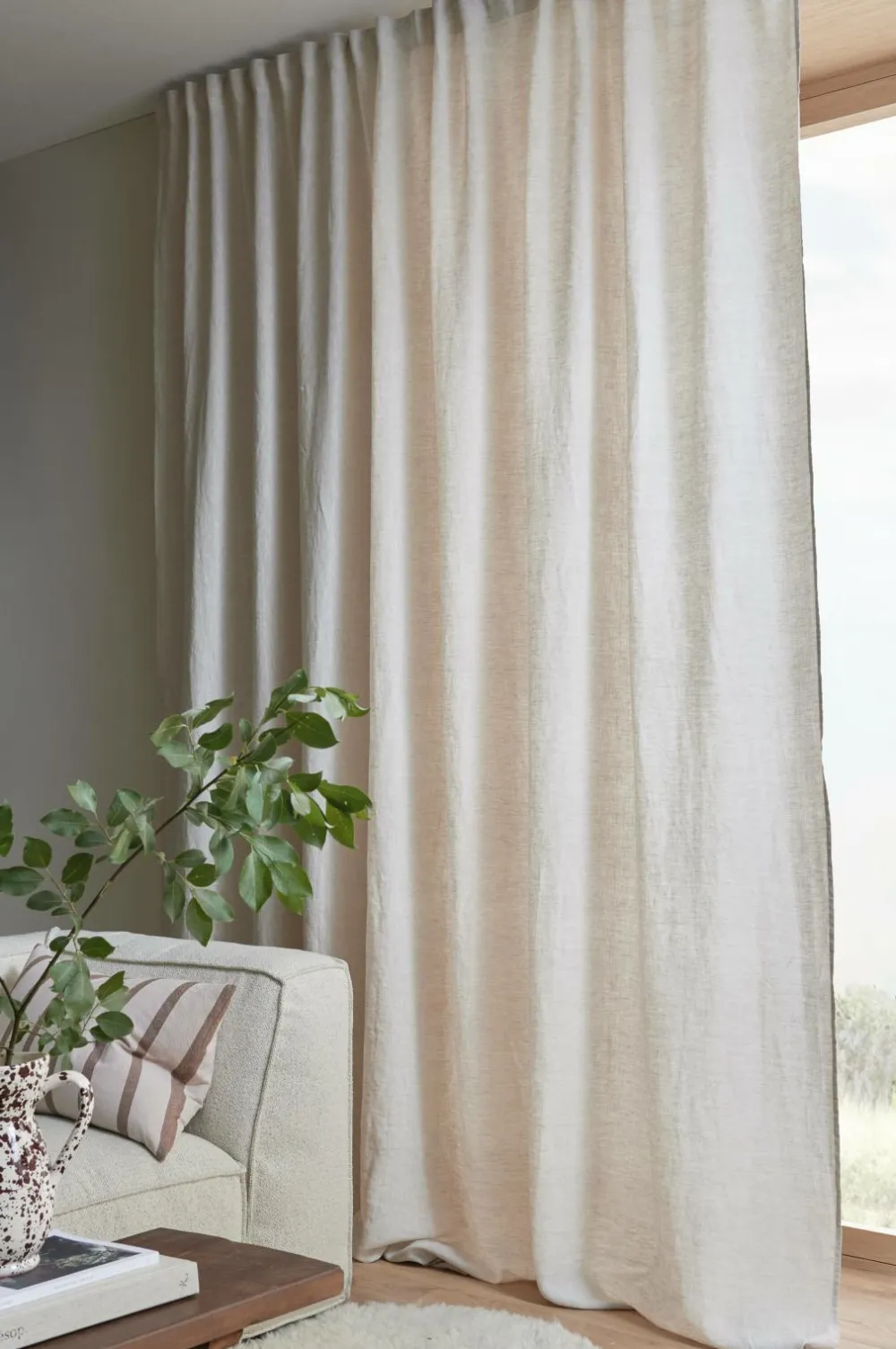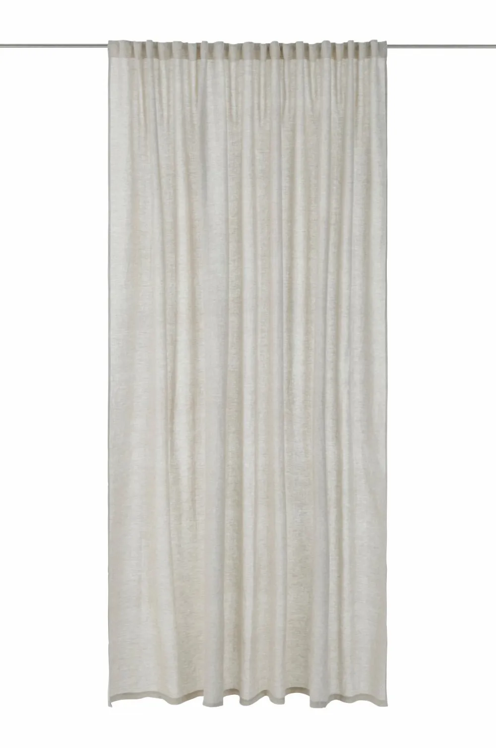 En ekstra bred multibåndslængde i vasket hør med smuk struktur. Multibåndet gør, at du enten kan hænge gardinet direkte på en gardinstang gennem de skjulte stropper eller anvende ringe, nålekroge eller fingerkroge. Snoren i rynkebåndet gør, at du let kan skabe ensartede, flotte læg. Kan også bruges med rynkebåndskrog. Bredde: 270 cm. Længde: 300 cm.