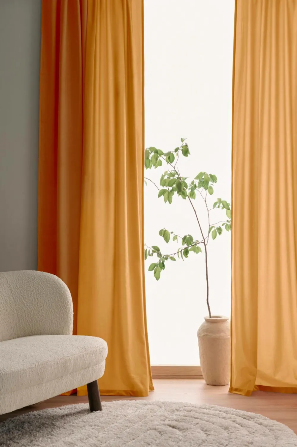 To multibåndslængder i velour med fin glans og blødt fald. Multibåndet gør, at du enten kan hænge gardinerne direkte på en gardinstang gennem de skjulte stropper eller anvende ringe, nålekroge eller fingerkroge. Snore i rynkebåndet gør at du let kan skabe ensartede, flotte læg. Bredde 140 cm. Tre længder: 220, 250 og 300 cm.