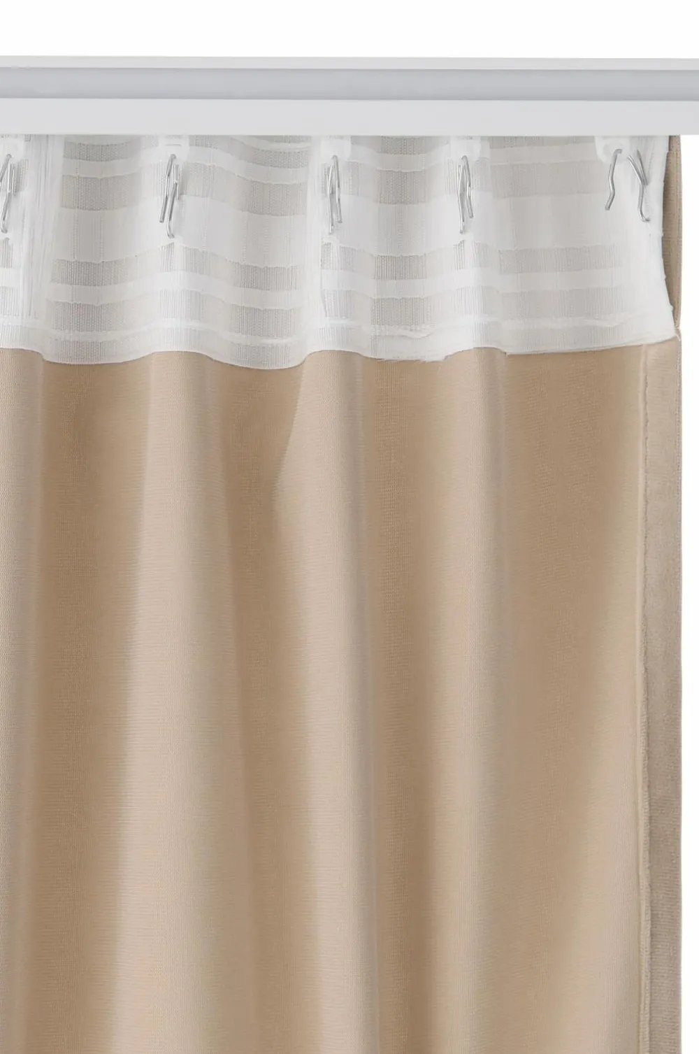 To multibåndslængder i velour med fin glans og blødt fald. Multibåndet gør, at du enten kan hænge gardinerne direkte på en gardinstang gennem de skjulte stropper eller anvende ringe, nålekroge eller fingerkroge. Snore i rynkebåndet gør at du let kan skabe ensartede, flotte læg. Bredde 140 cm. Tre længder: 220, 250 og 300 cm.