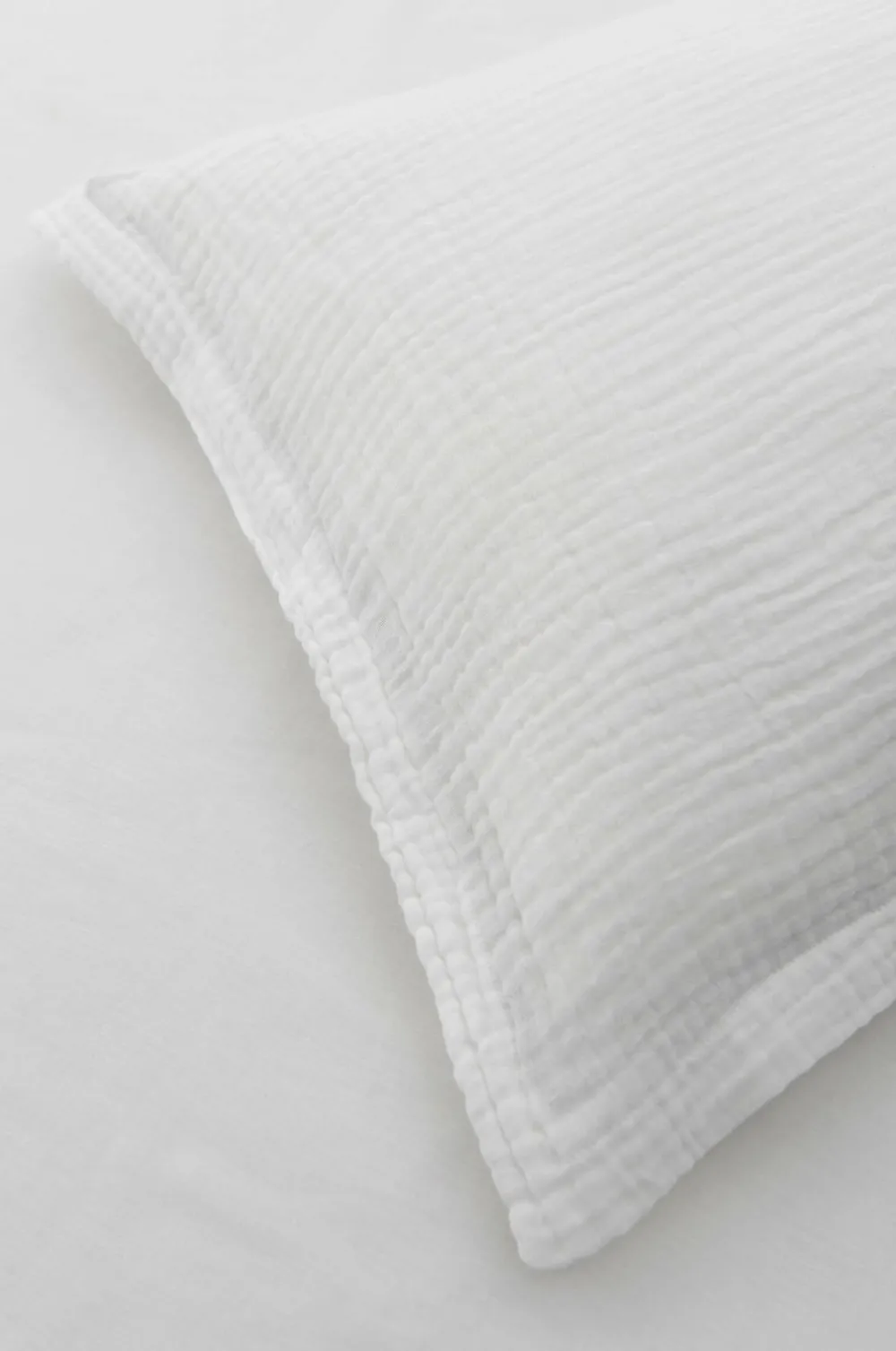 Pudebetræk af vasket, økologisk bomuldsmuslin i 2 lag. 2,5 cm vinge rundt om. Trådtal: 230 TC.