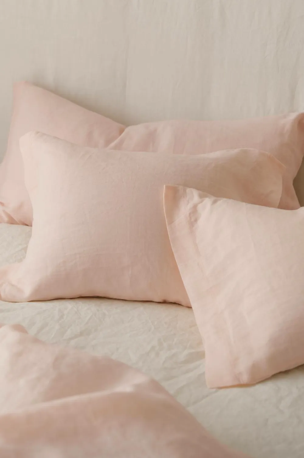 Pudebetræk i blød og sval vasket kvalitet af fransk hør. Str. 50×60 cm + 5 cm vinge på de korte side. Vægt 165 g/m2.