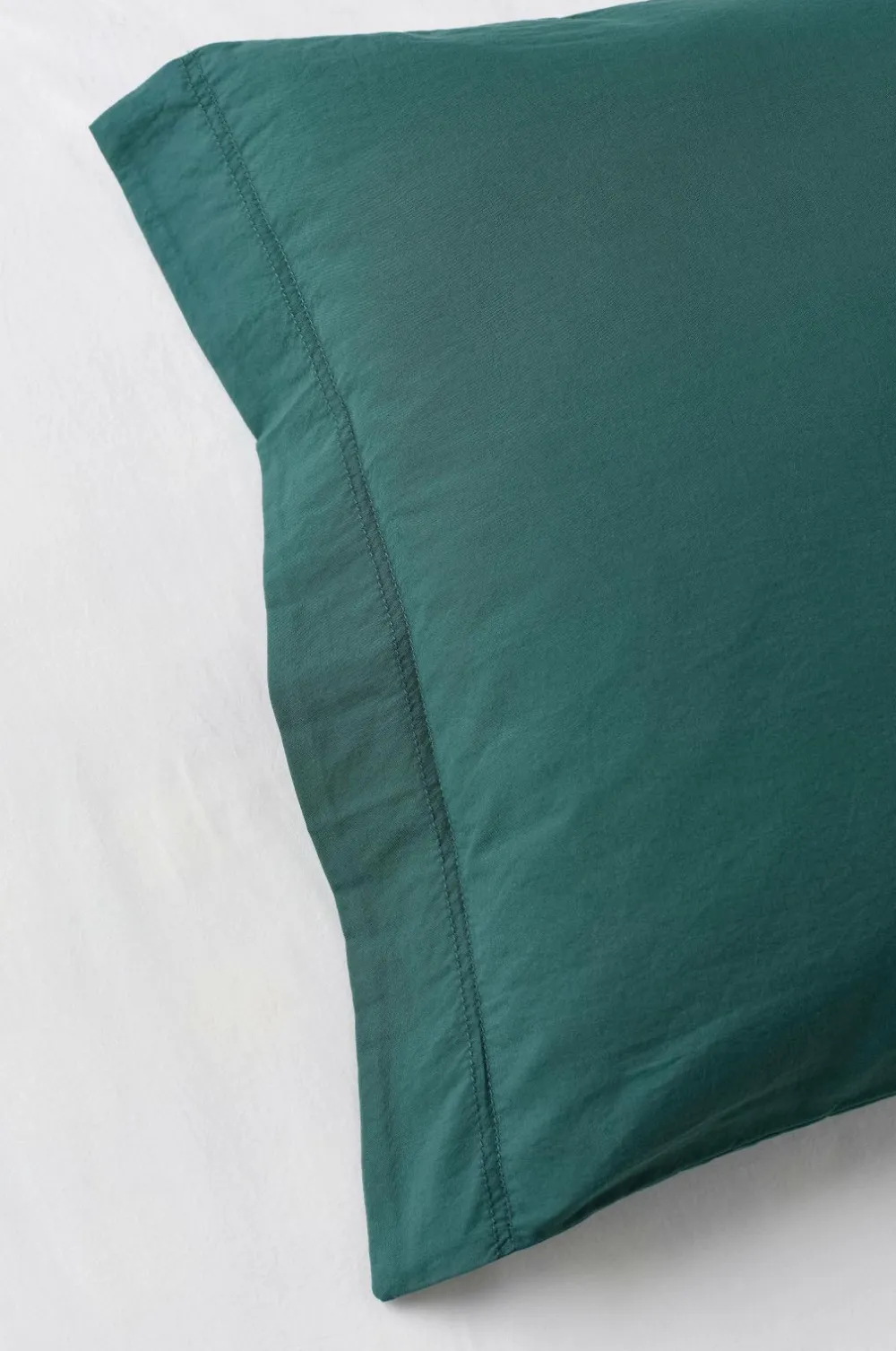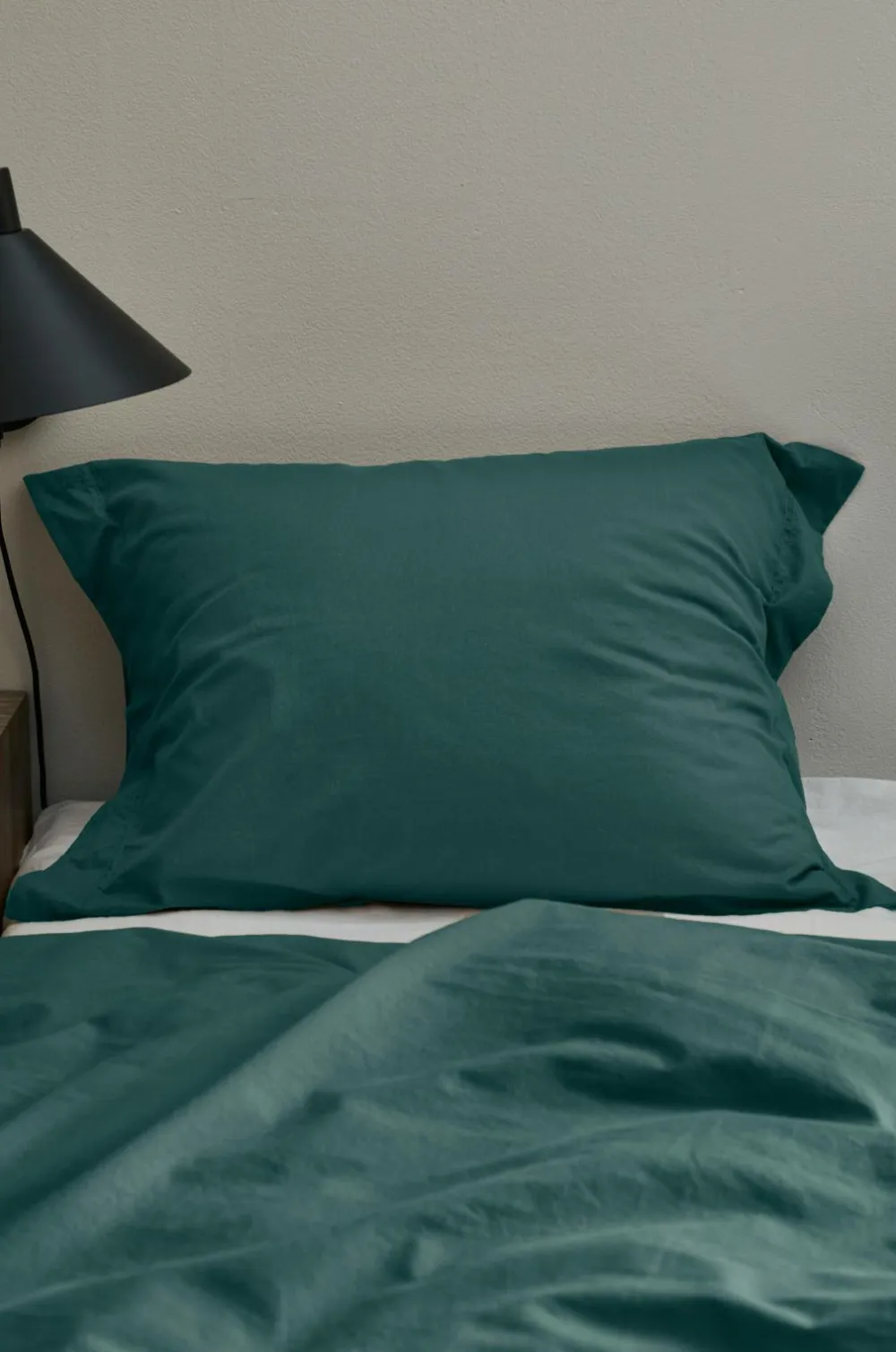 Pudebetræk i skøn kvalitet af blødvasket bomuld. Trådtæthed 144 tc. Stykfarvet. Str. pudebetræk 50×60 cm + 5 cm vinge på kortsiderne.