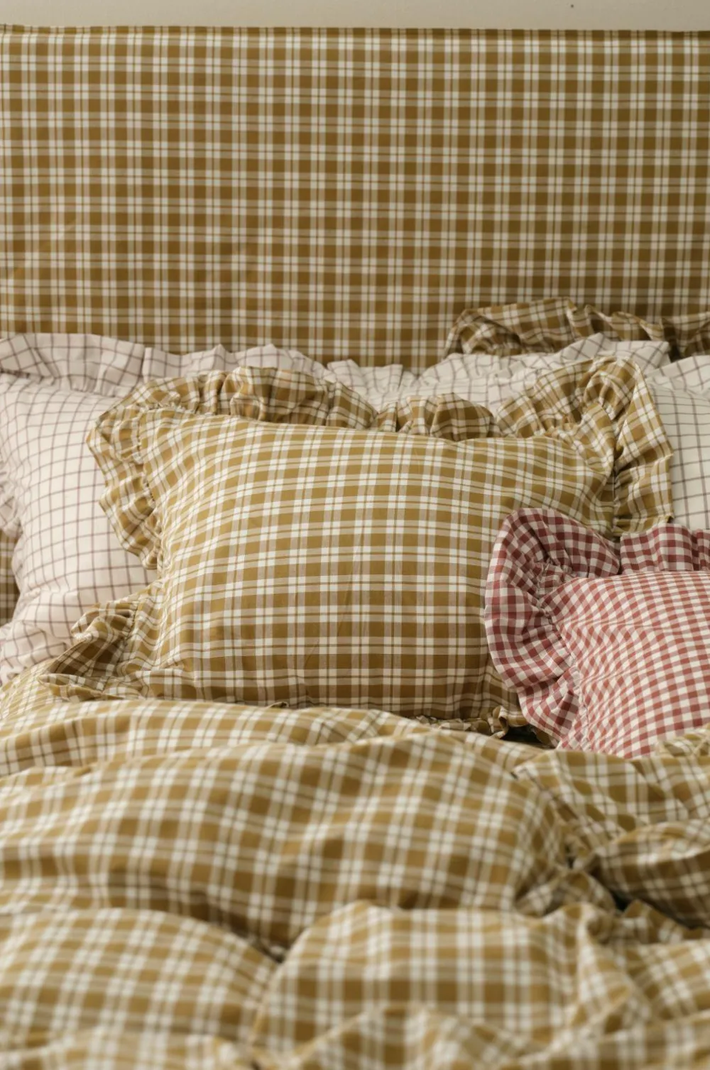 • Pudebetræk i blød bomuld med garnfarvede kvadrater