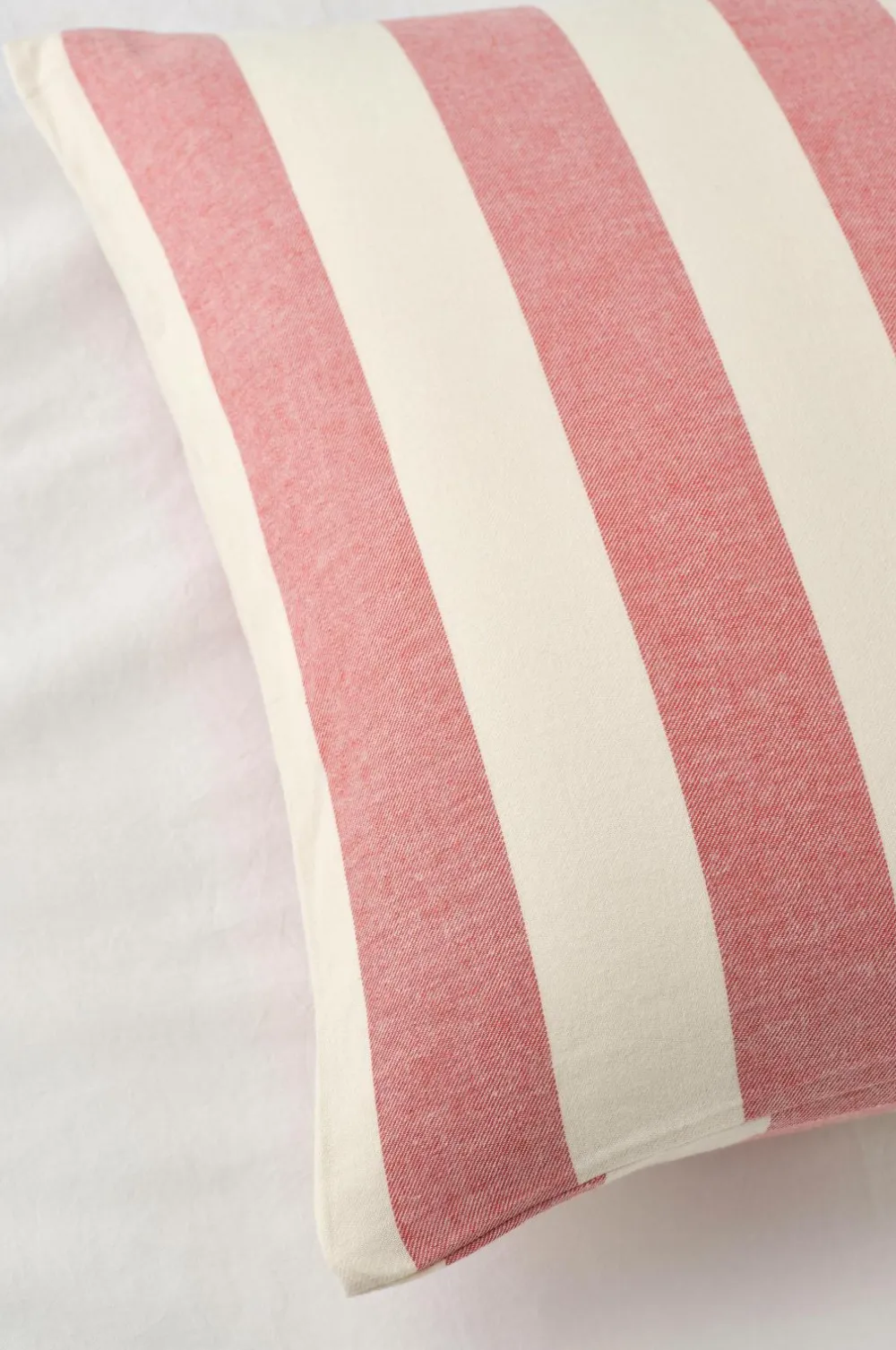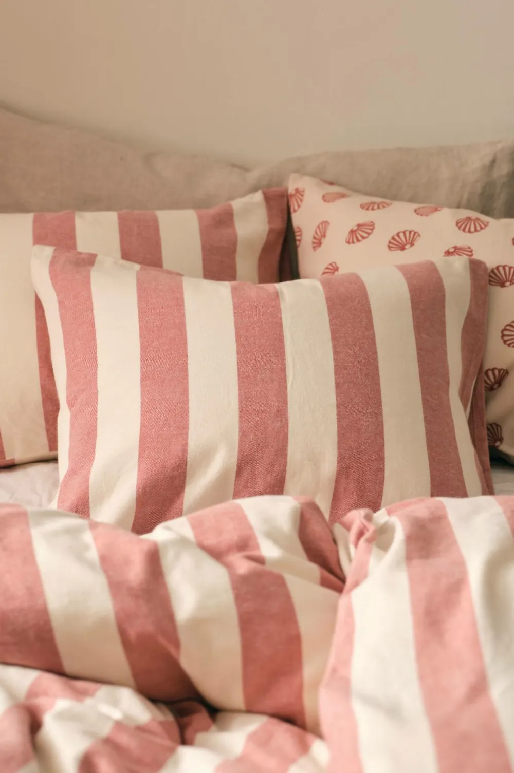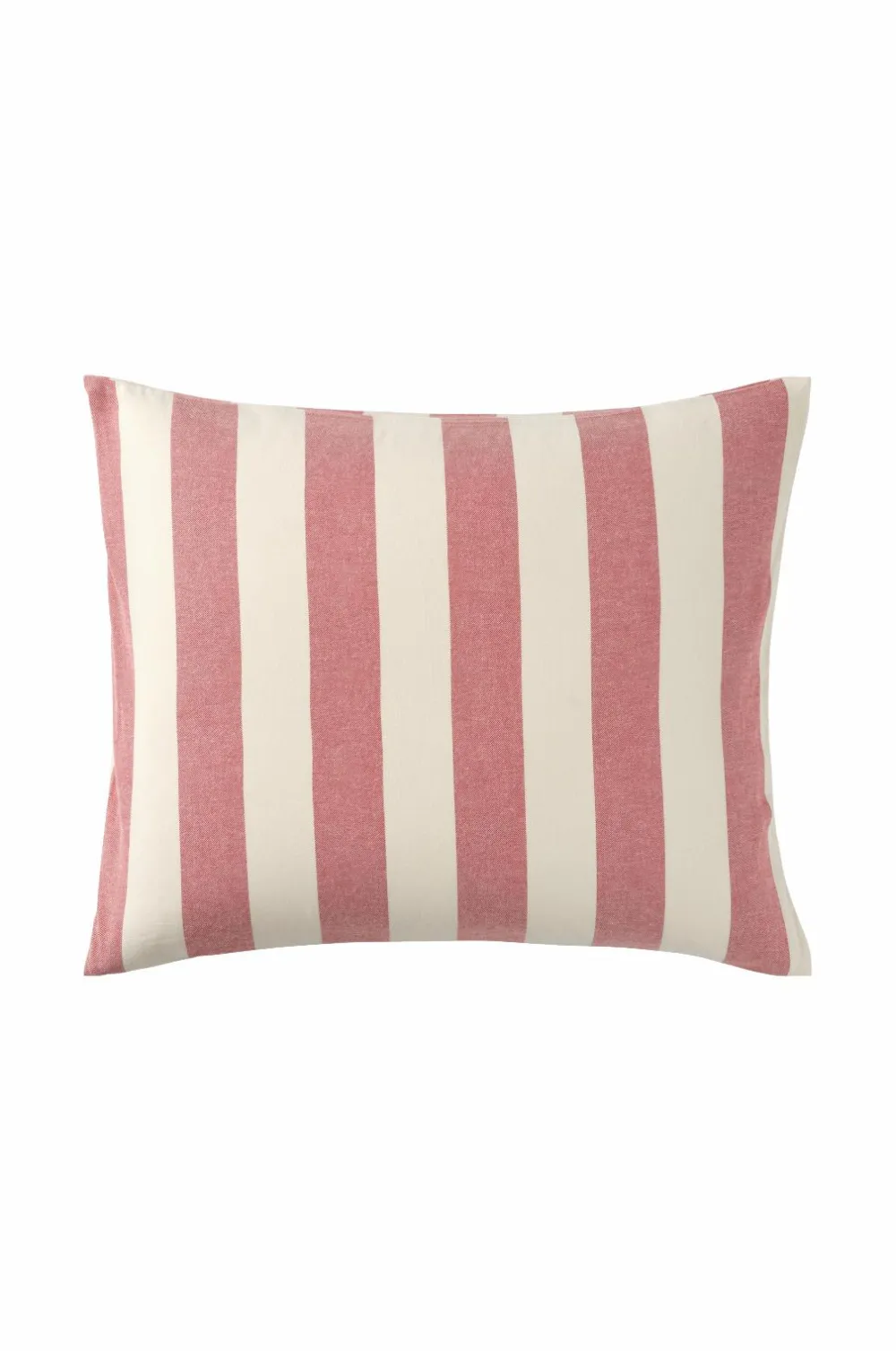 Pudebetræk i flonel af økologisk bomuld med garnfarvede striber. Vasket kvalitet med blød, børstet overflade og dobbelte jeanssømme. Trådtæthed 110 TC. Str. 50×60 cm.