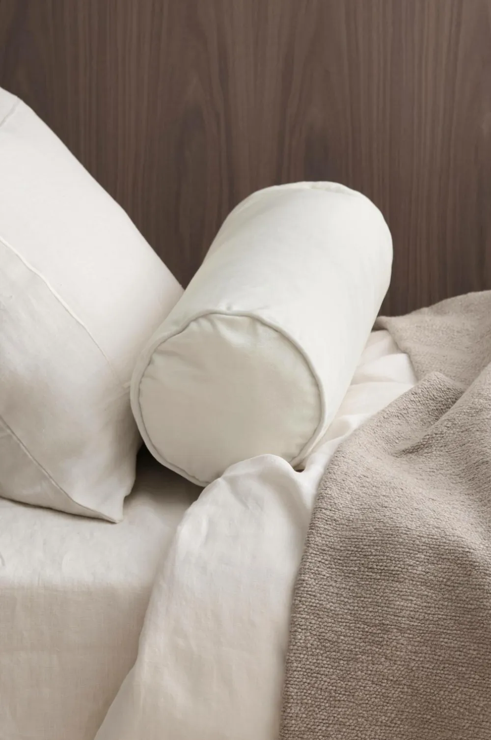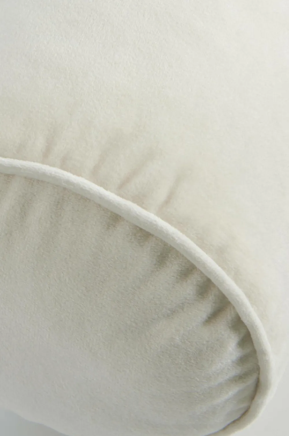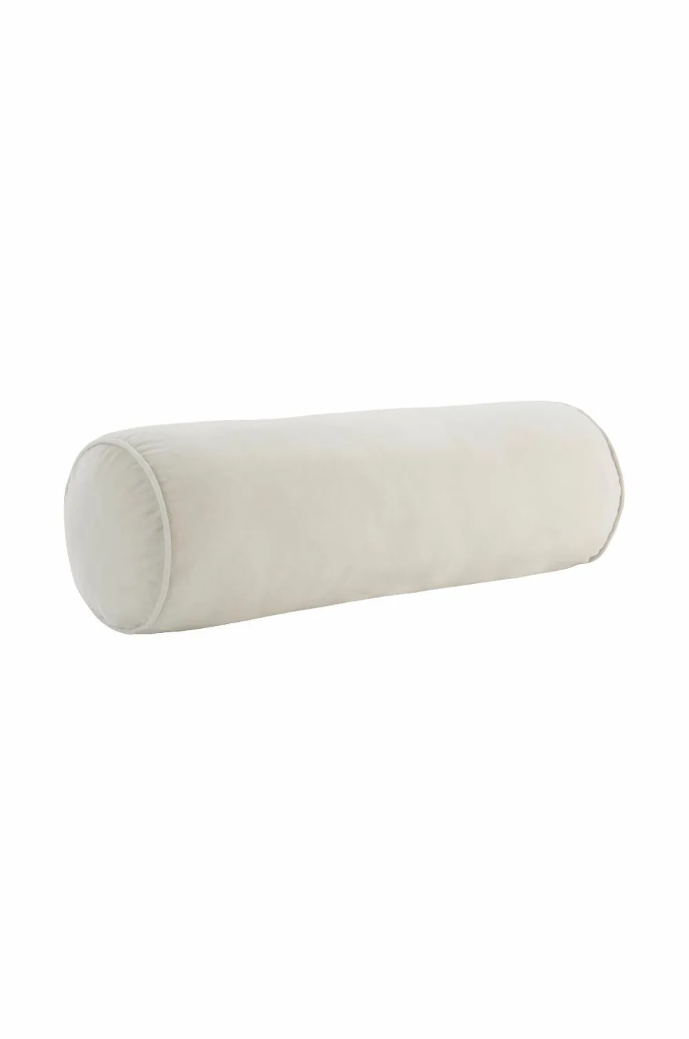 Cylinderformet pude i velour med monteringspude i polyester. Paspoleret kant i enderne. Af genindvundet polyester. Lynlås på undersiden. Bredde 55 cm, diameter 18 cm.