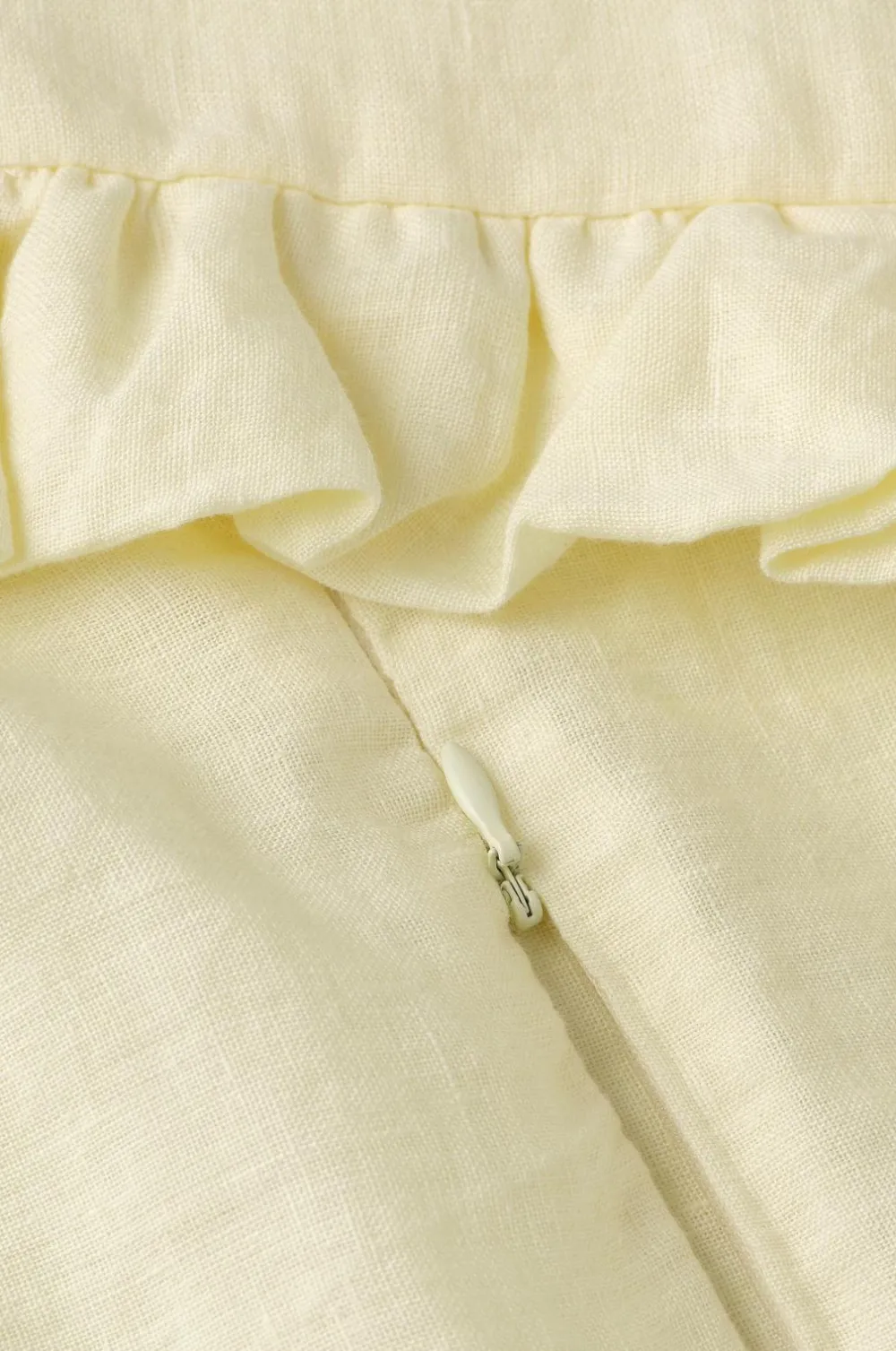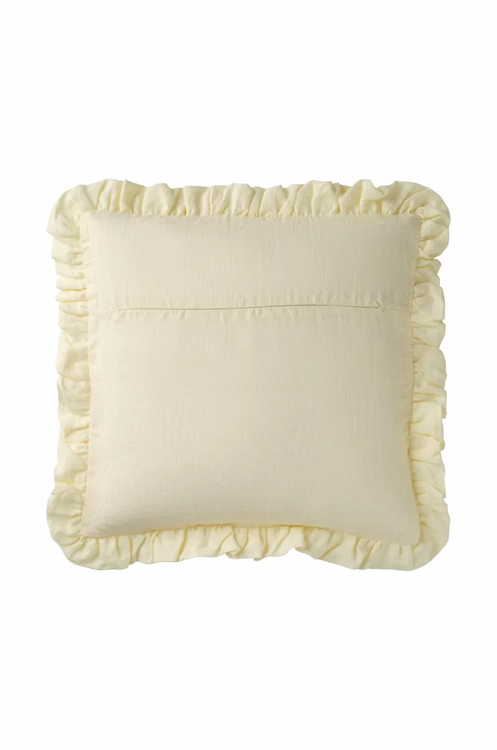 Pudebetræk i blød, vasket hørkvalitet af fransk hør. Flæse rundt om og lynlås bagpå. Str. 50×50 cm + 4,5 cm flæse.