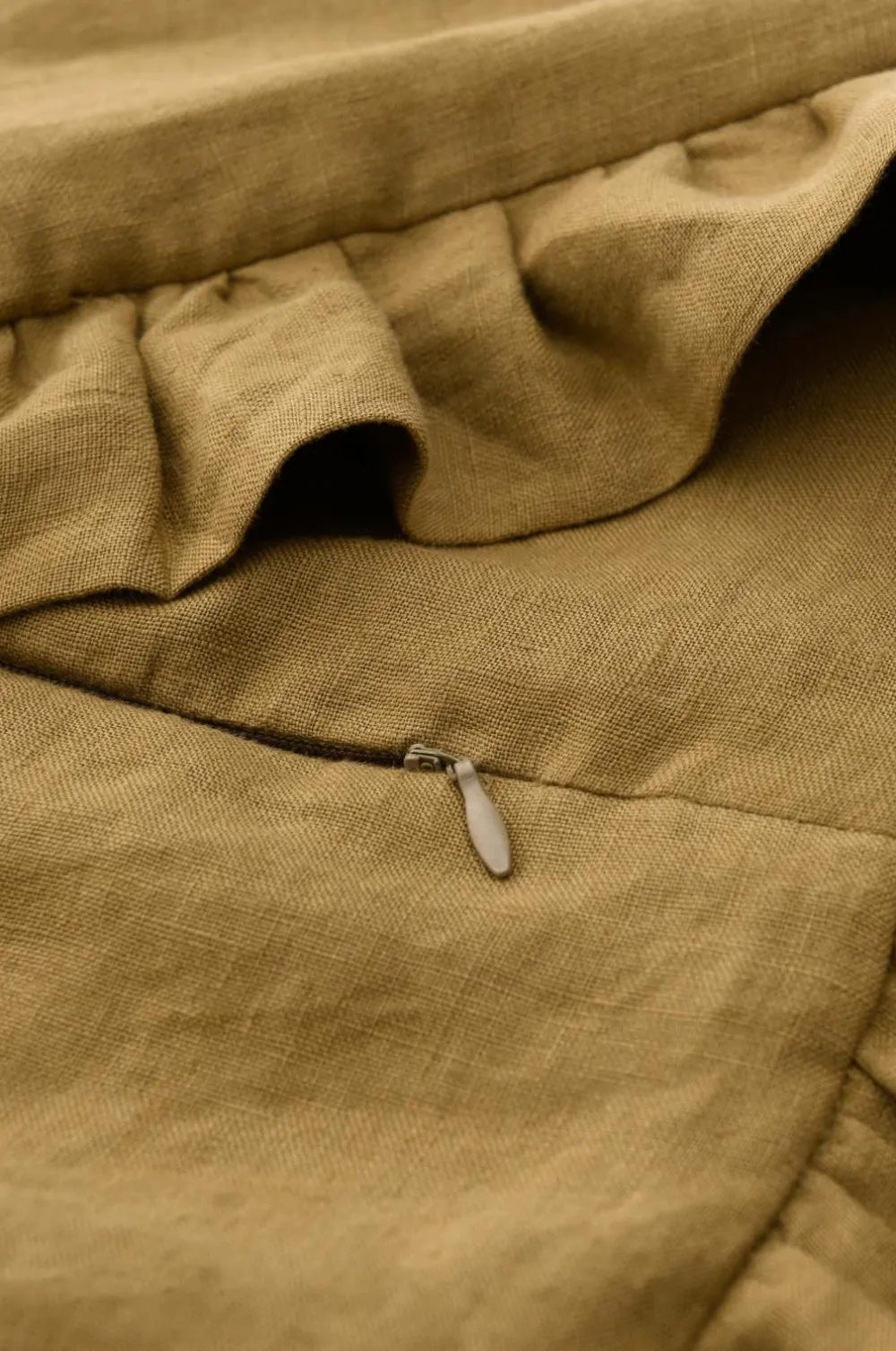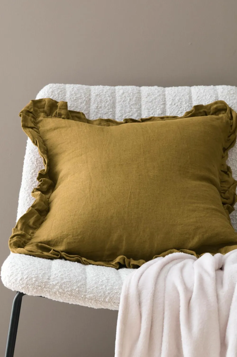 Pudebetræk i blød, vasket hørkvalitet af fransk hør. Flæse rundt om og lynlås bagpå. Str. 50×50 cm + 4,5 cm flæse.
