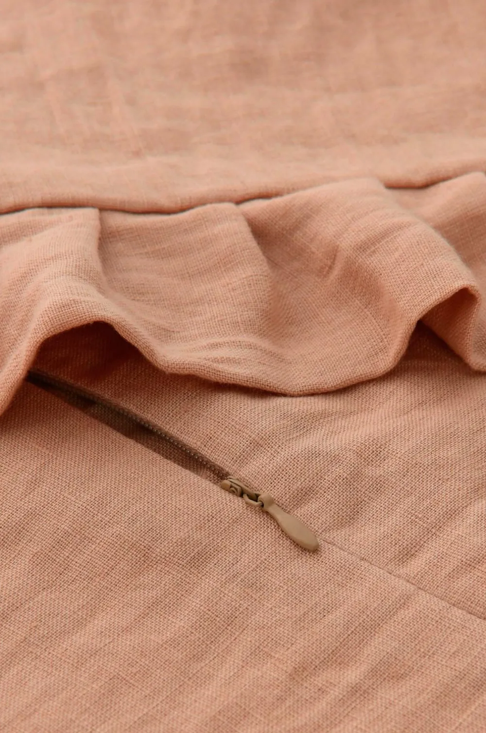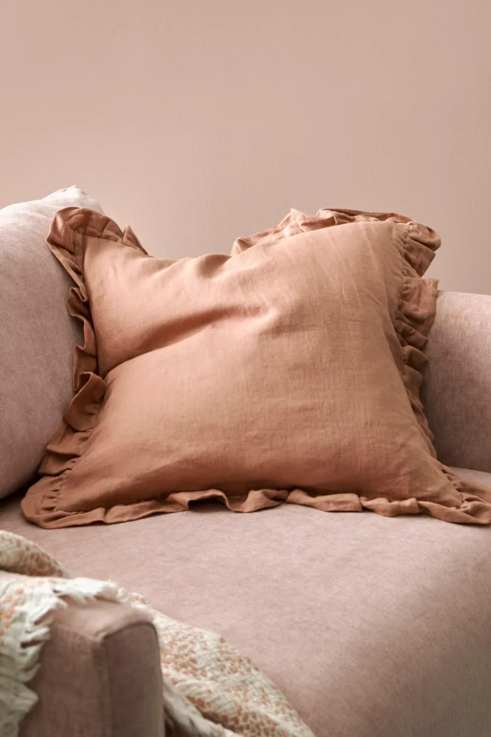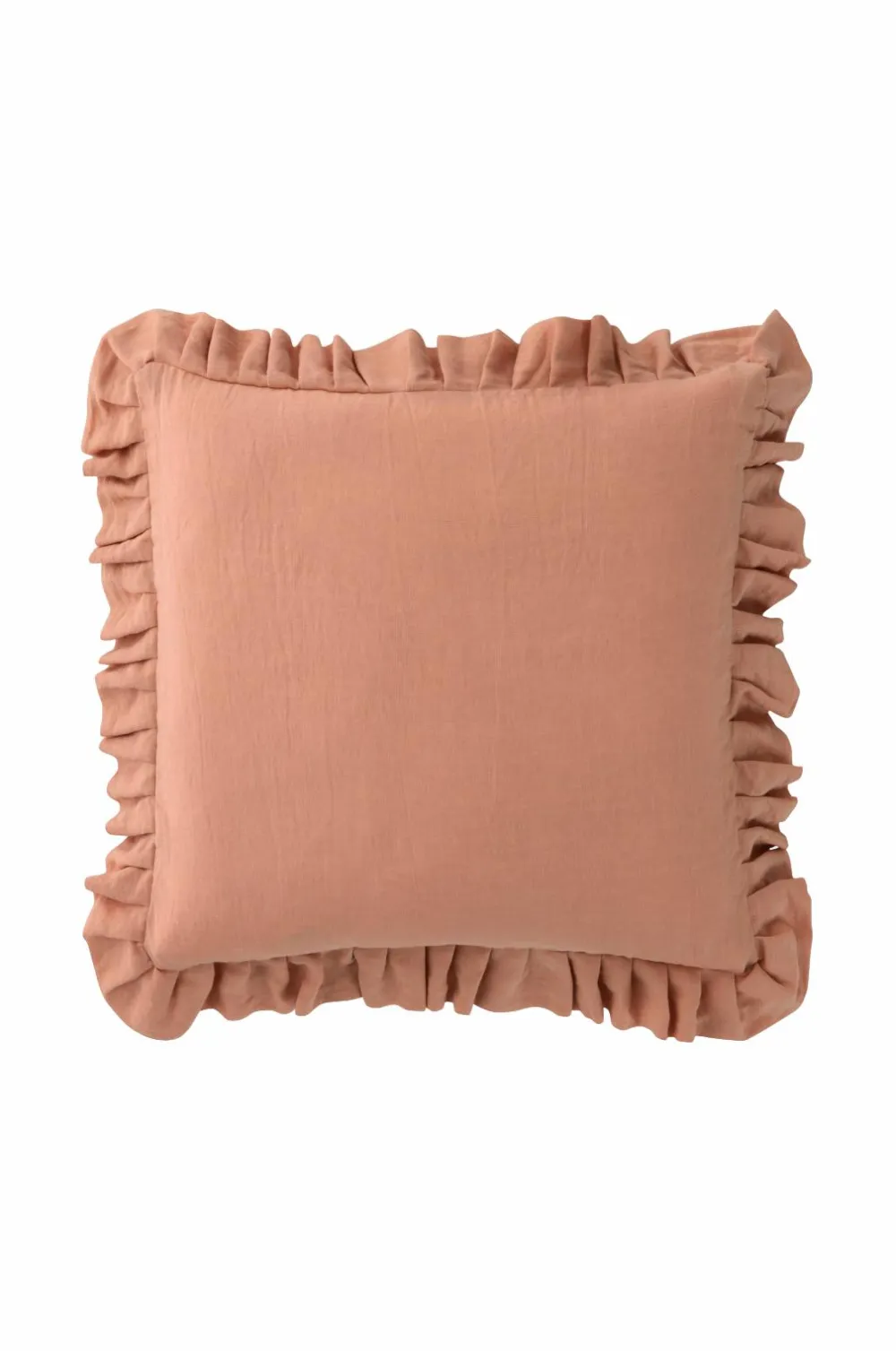 Pudebetræk i blød, vasket hørkvalitet af fransk hør. Flæse rundt om og lynlås bagpå. Str. 50×50 cm + 4,5 cm flæse.