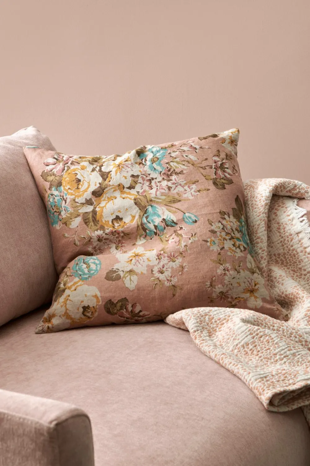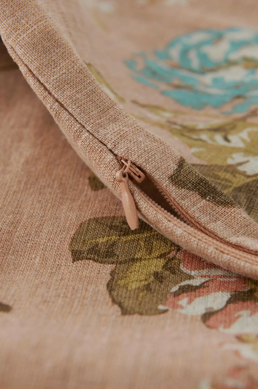 Pudebetræk i blød, vasket hørkvalitet med printet mønster. Af fransk hør. Lynlås.