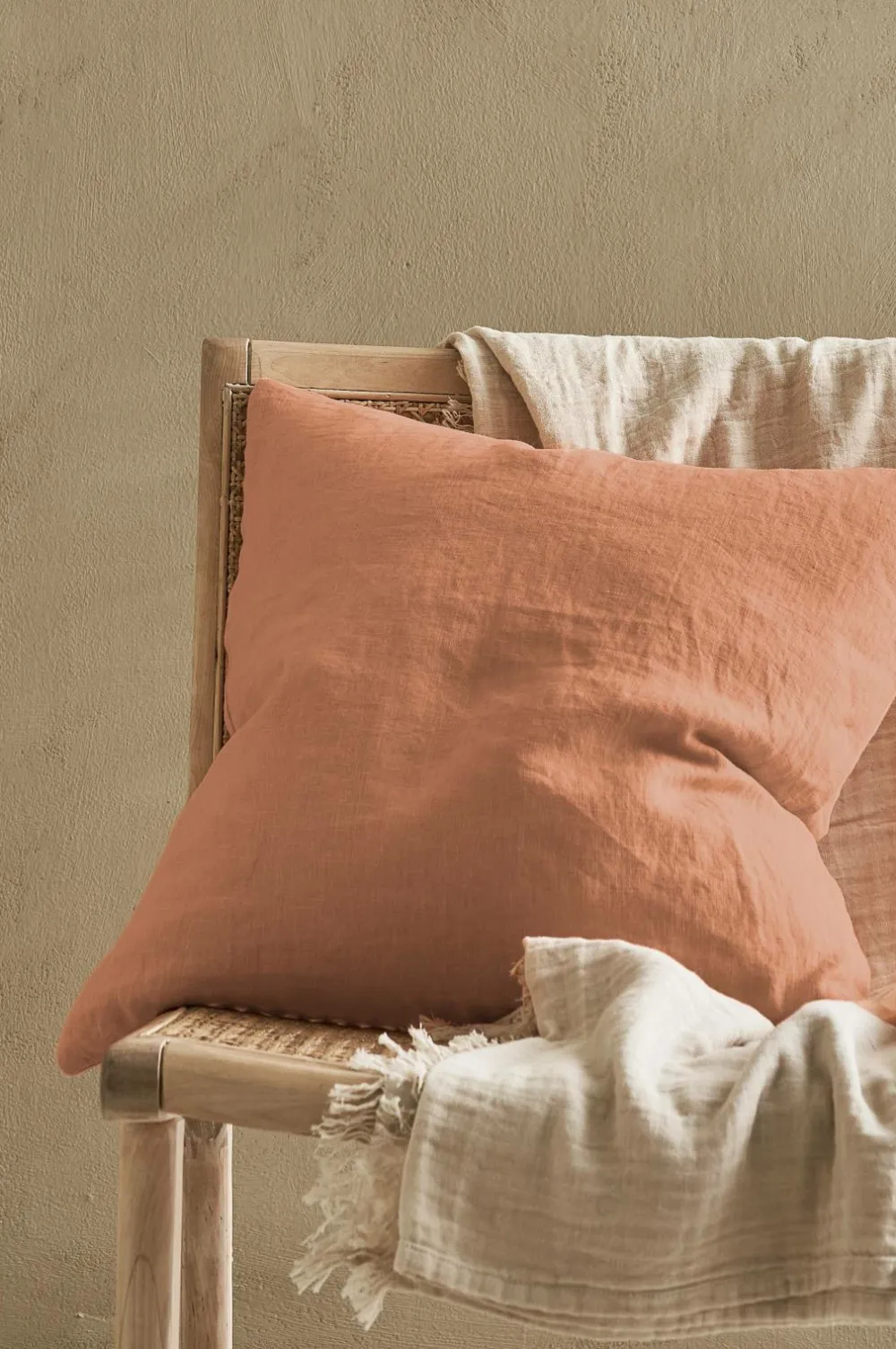 Pudebetræk i blød, vasket hørkvalitet af fransk hør. Lynlås i bunden. Str. 50×50 cm.