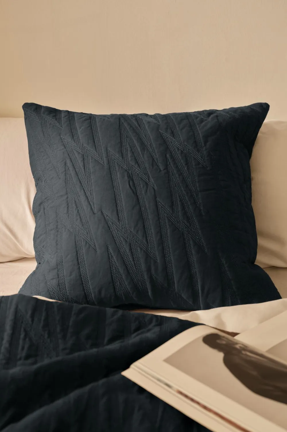 • Quiltet pudebetræk i bomuldstwill med Lynmønster