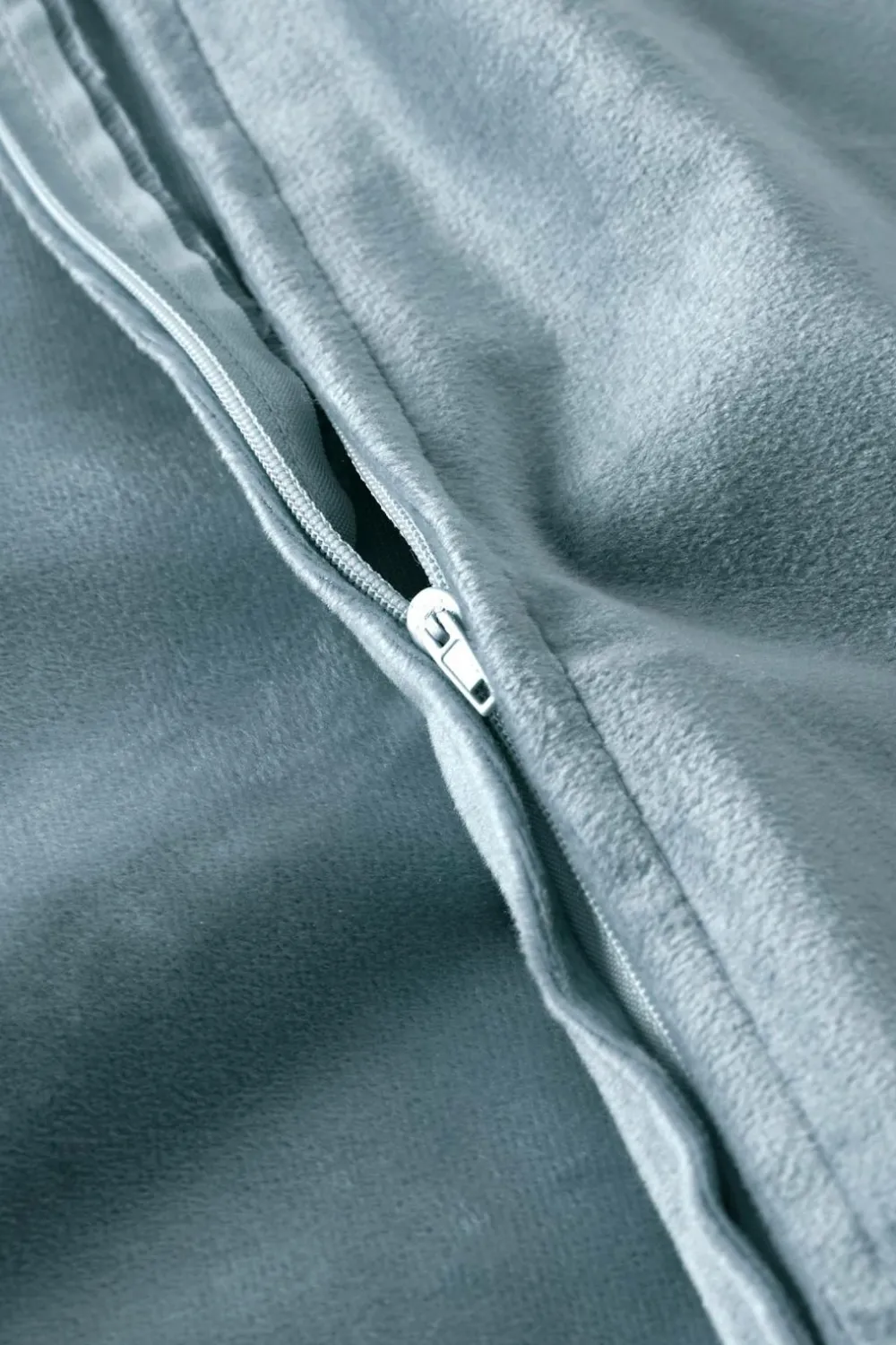 Pudebetræk af velour med fin glans. Af genindvundet polyester. Lynlås i bunden.