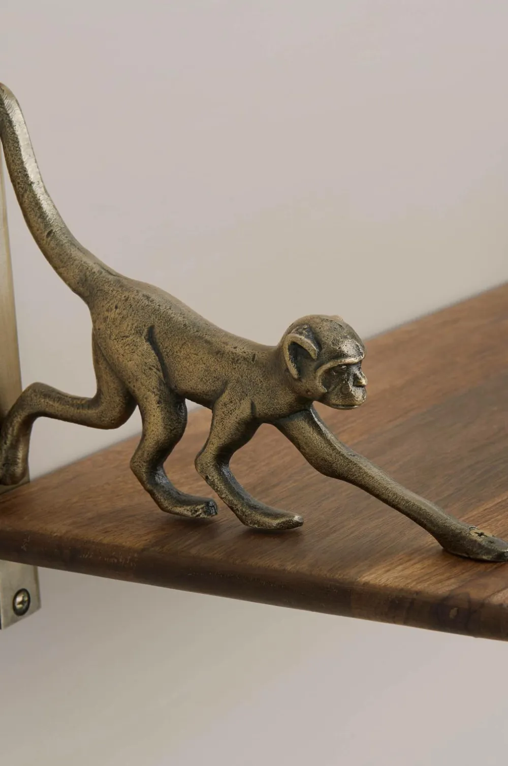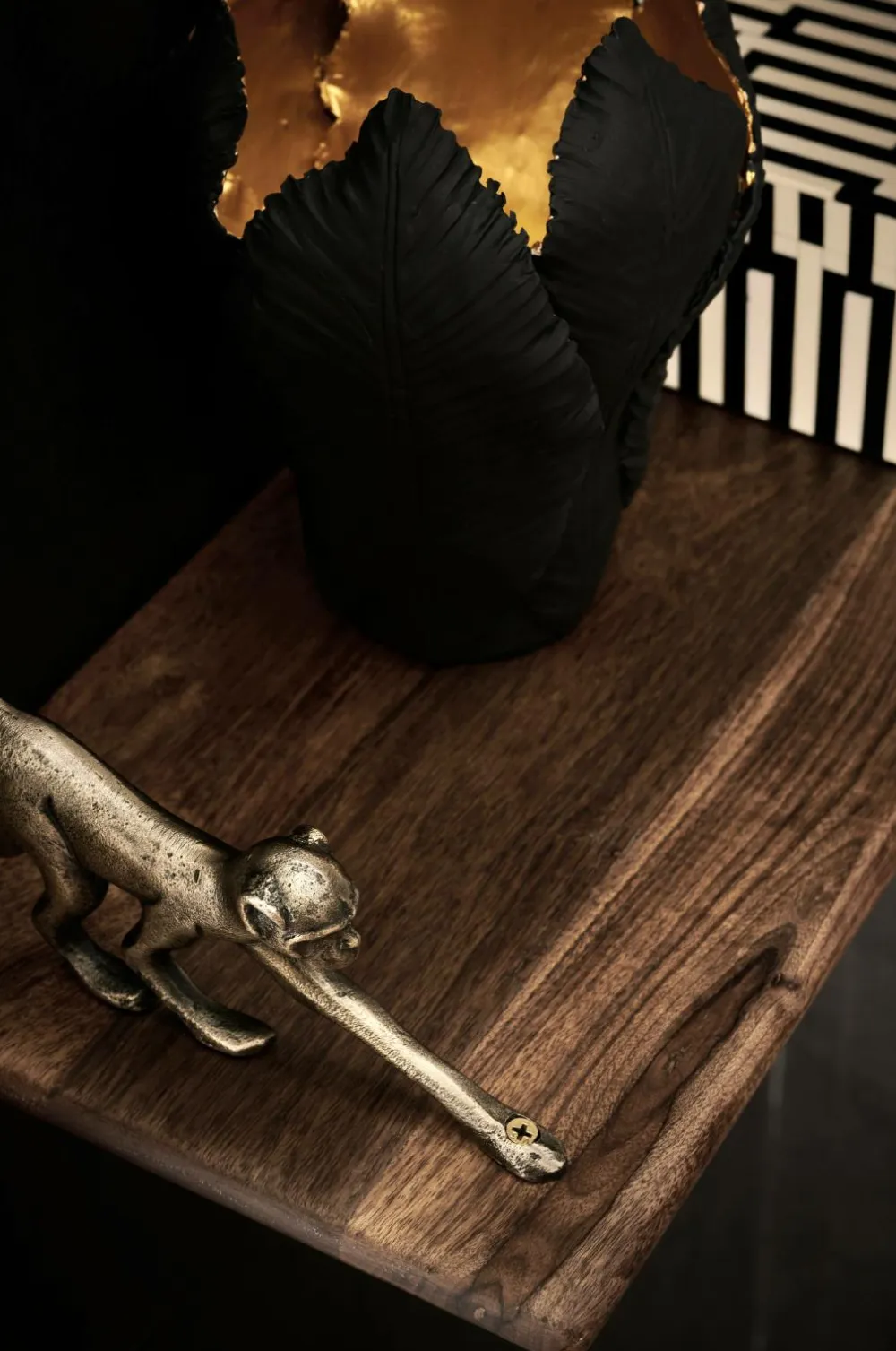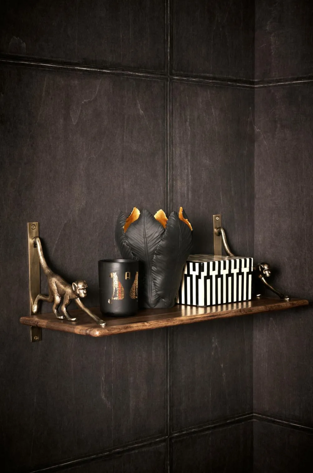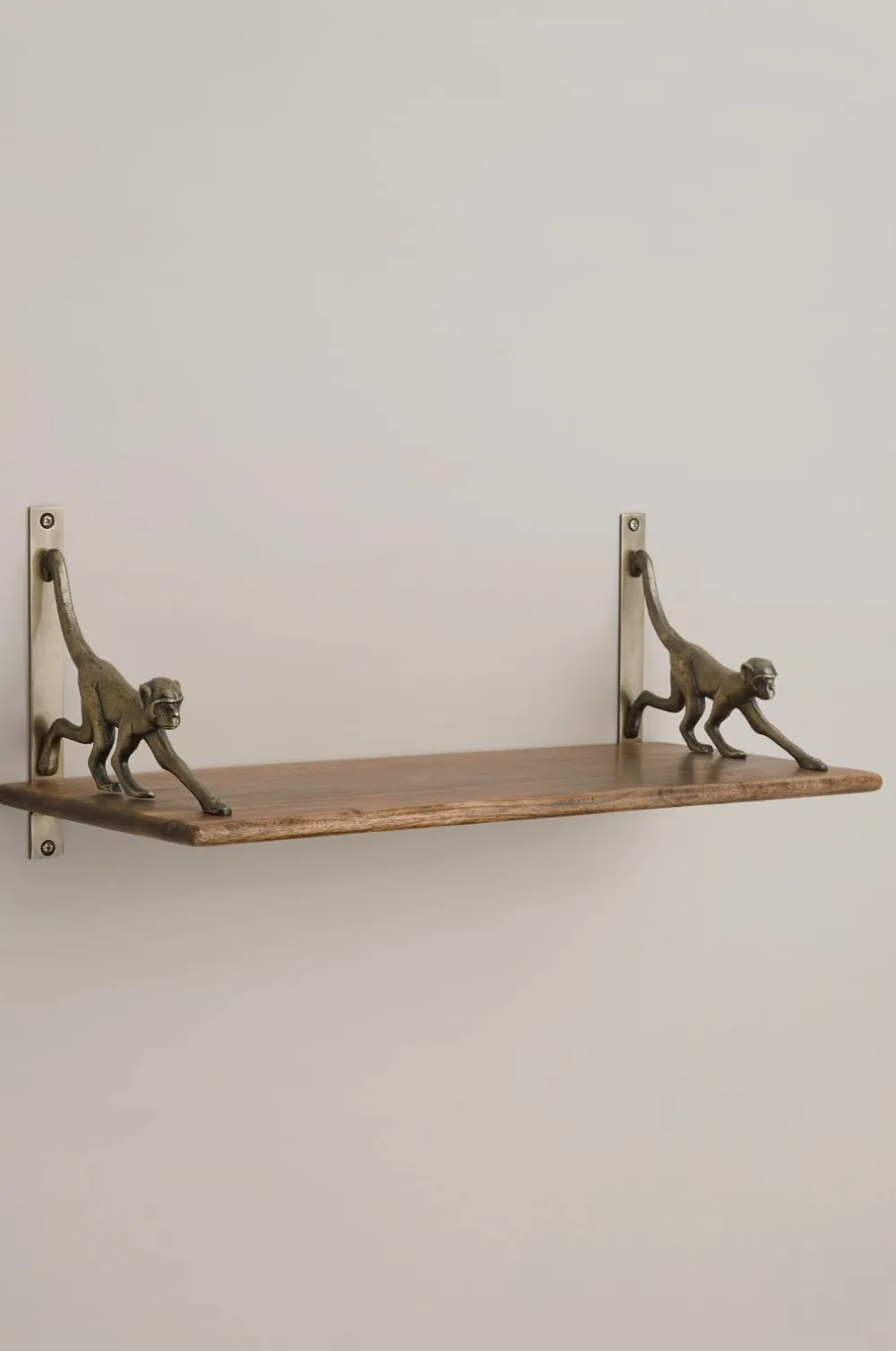 Væghylde i mangotræ med dekorative konsoller i antikmessingfarvet metal. Lettere samling. Produktet indeholder FSC-certificeret træ, som er fældet i et ansvarsfuldt skovbrug, der tager hensyn til mennesker og miljø.