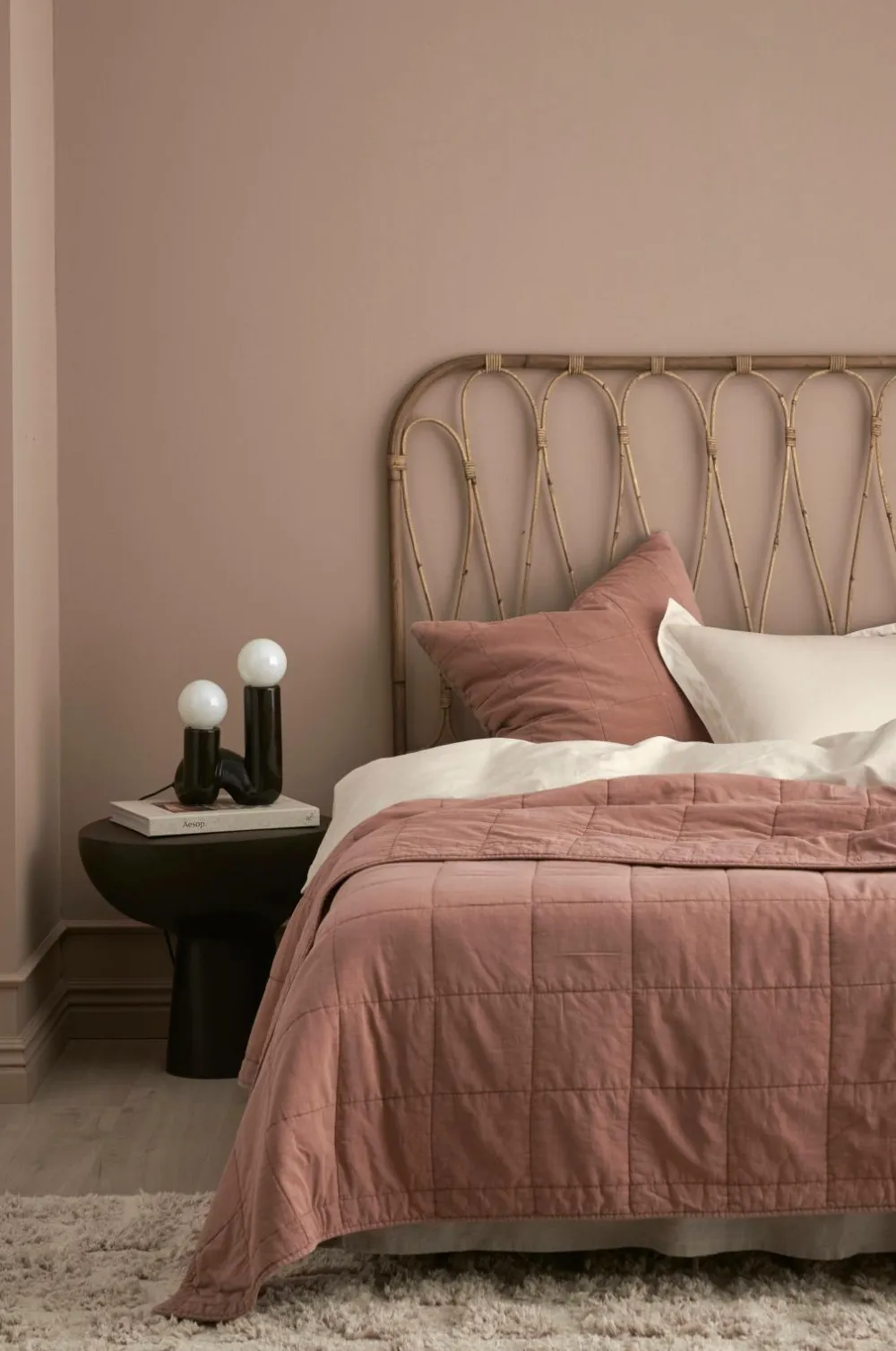 Hovedgavl i rotting med et dekorativt mønster. Gavlen stilles på gulvet.