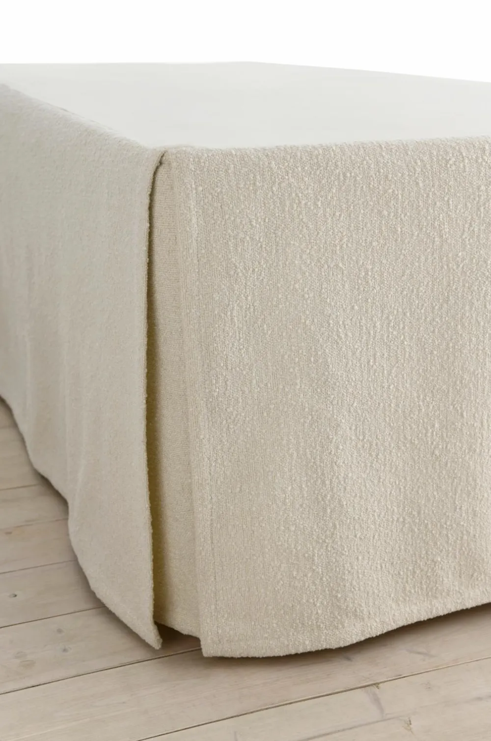 Sengekappe i kraftig bouclé af polyester med flade i bomuld. Sengekappen findes i flere størrelser. Højde 60 cm (passer til kontinentalseng).