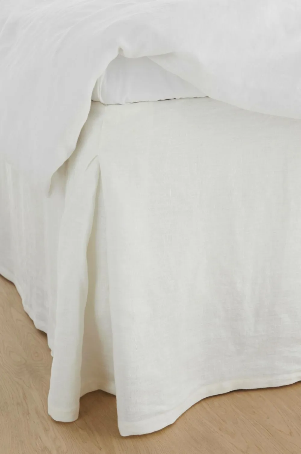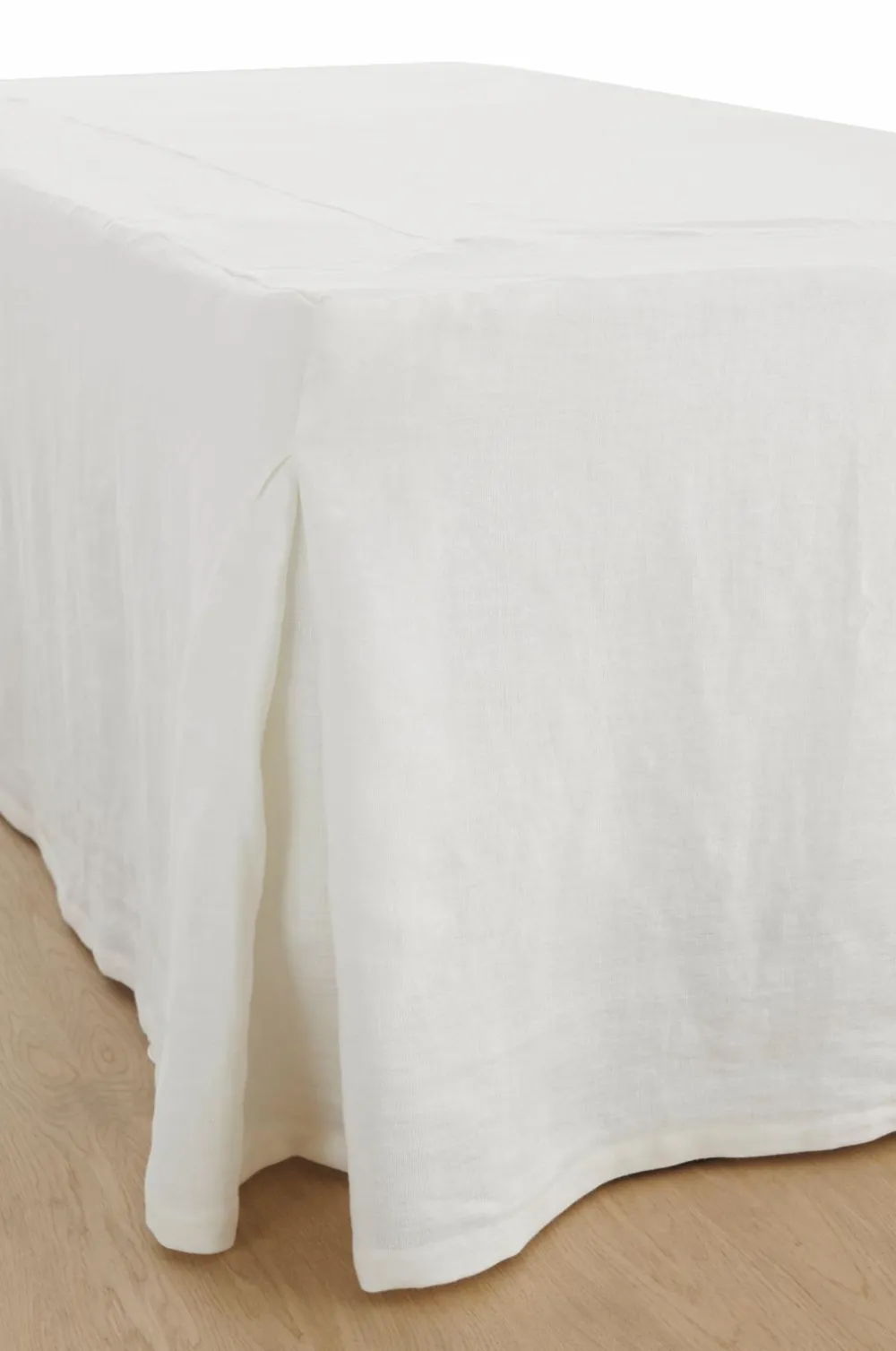 Sengekappe af vasket fransk hør med flade i økologisk bomuld. Let nedsyede i hjørnerne. Kappe på tre sider. Kappens længde 60 cm.